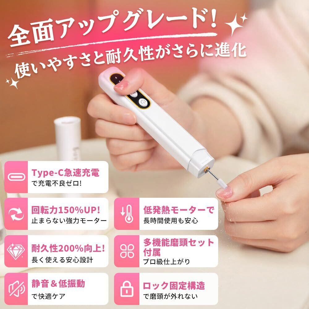 「現役ネイリスト監修」ネイルマシン 電動ネイルマシン ジェルネイル オフ 電動爪やすり ネイルケア 爪磨き 甘皮処理 角質除去 ネイルドリル 正逆回転 LEDライト搭載 三段階スピ一ト 20000RPM高速回転 USB充電 自宅サロン用 (ホワイトPro)