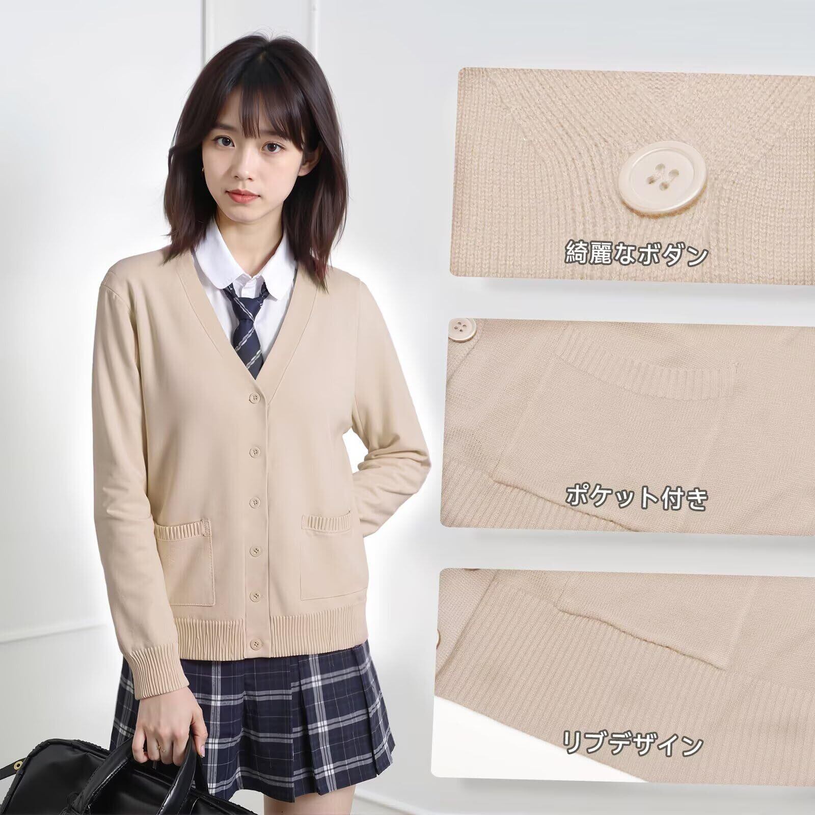 [Sillictor] スクールカーディガン 女子 制服 カーディガン 学生 レディース 無地 ニット Vネック セーター ゆったり 通学 通勤