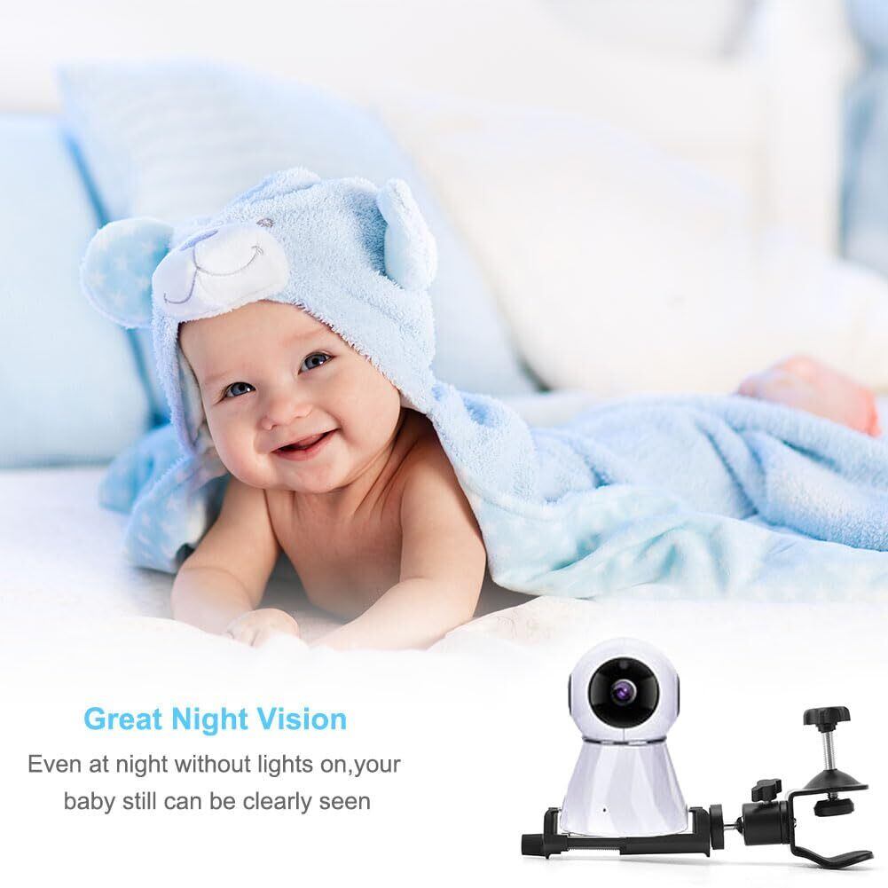 常に赤ちゃんに目を離さない:このアップグレードされたベビーカメラマウントはカルダンジョイントを採用し、360度回転をサポートし、ケアをよりよくケアするのに役立ちます。