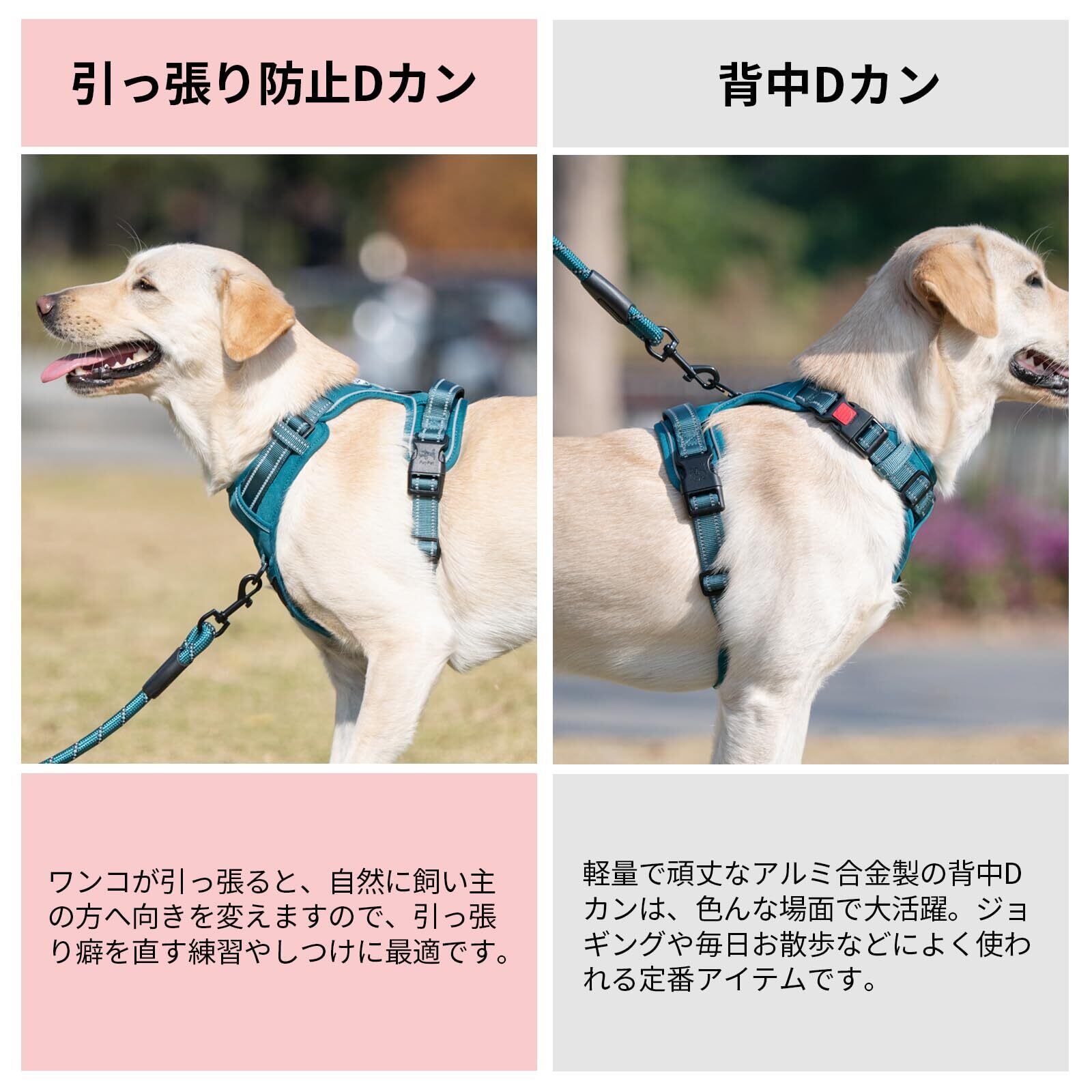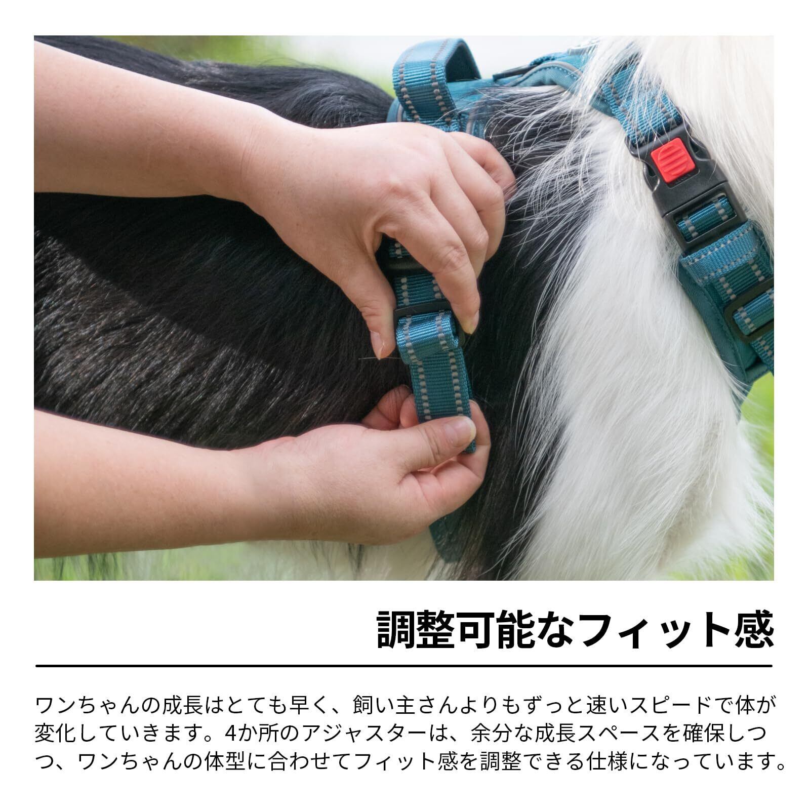 【高品質素材&反射材】:ストラップと耐久性に優れた生地は快適な装着感を提供し、犬の動きを妨げたり肌を刺激したりしません。柔らかいパッド付きの通気性に優れたエアメッシュ裏地は怪我を防ぎながら、愛犬に快適さと保護を与えます。また、夜間の散歩に配慮して反射材を使用しています。暗い道でも目立ちやすく、夜間の視認性を高めます。【ご注意】お散歩中の脱走を防ぐため、丈夫な素材を使用していますが、小型犬にはやや重く感じられることがあります。