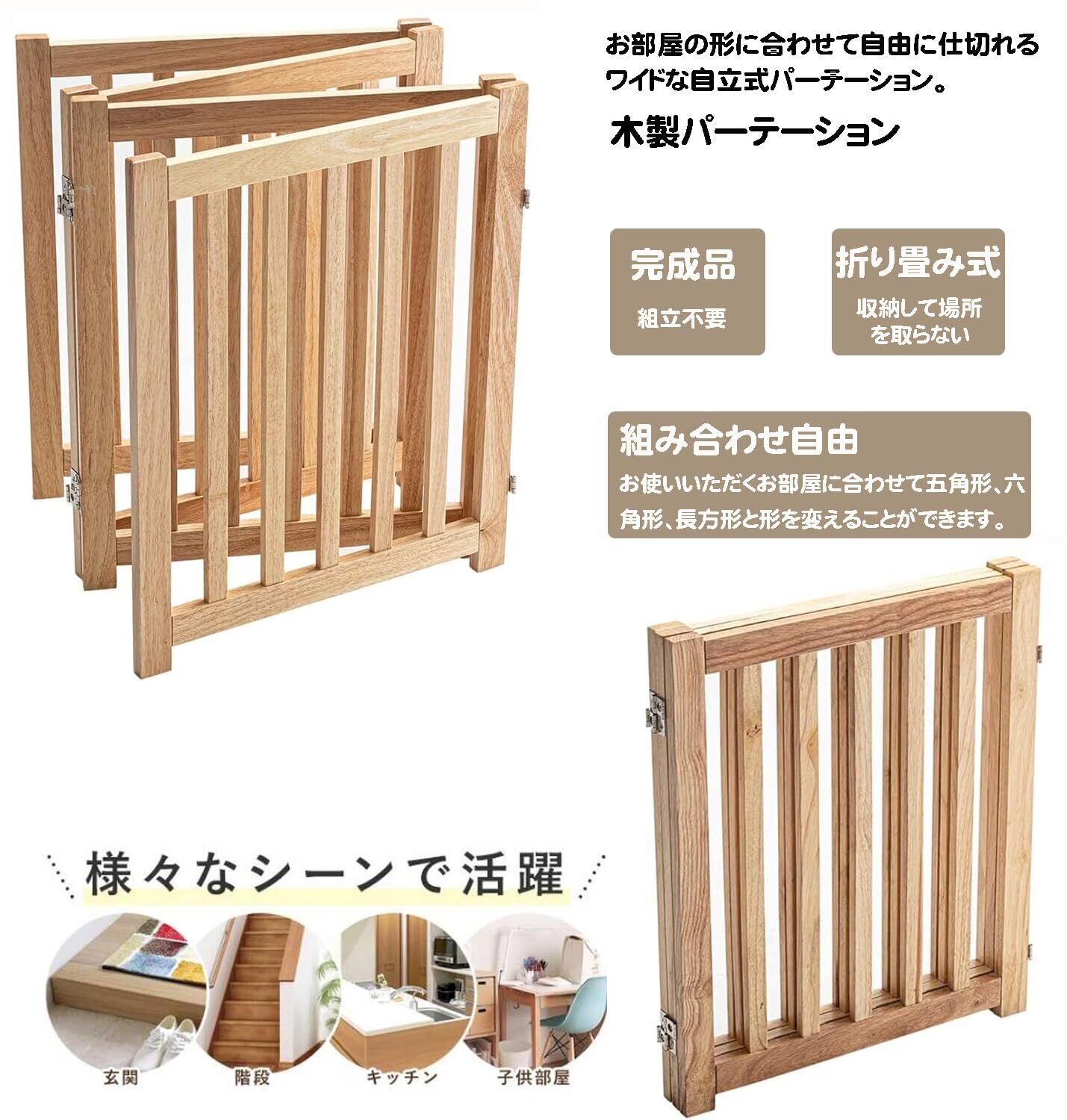 ペットゲート 木製 折り畳み式 組み合わせ自由 パーテーション 屋内用 置くだけ ワイド フェンス 犬 柵 いぬ 安全柵 小型犬 中型犬 脱走防止 ガード 飛び出し防止 多頭飼い ペットフェンス (3枚-高さ60cm)