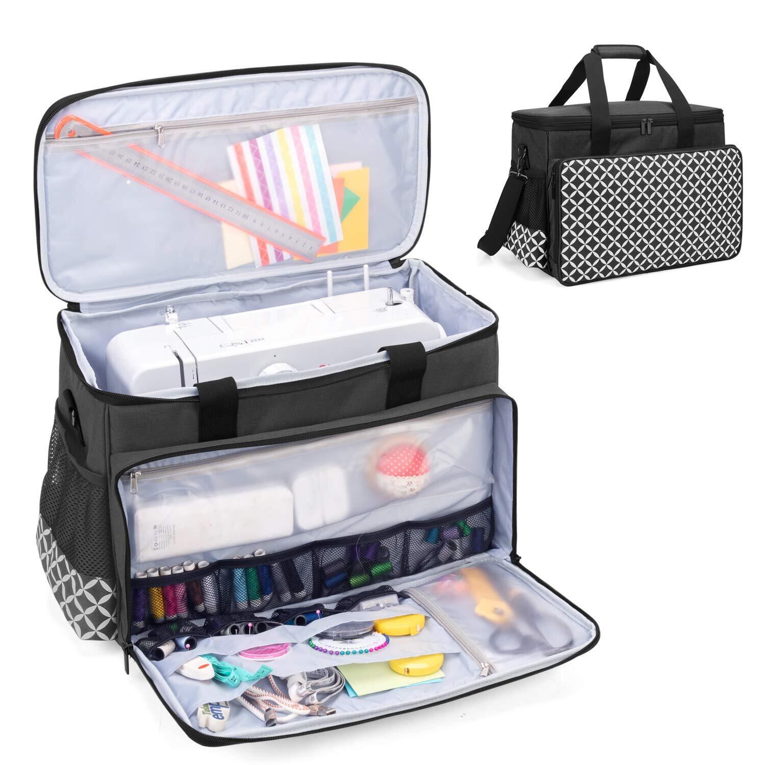 保護:耐久性のある外部ナイロン素材とクッション材を入れた内層により、大切なミシンを保護して、底部の取り外し可能な木製底板は、機械により優れた保護を提供します。