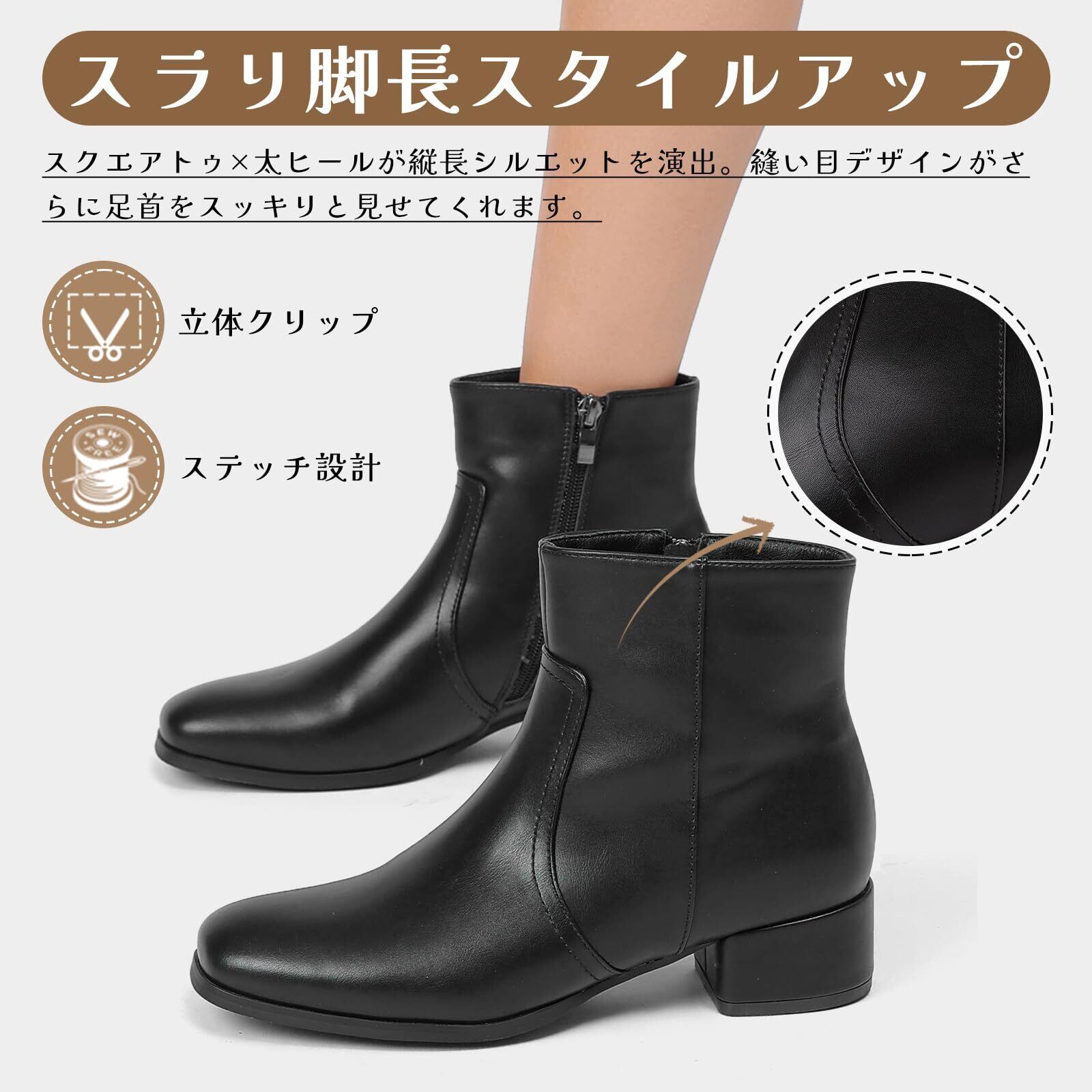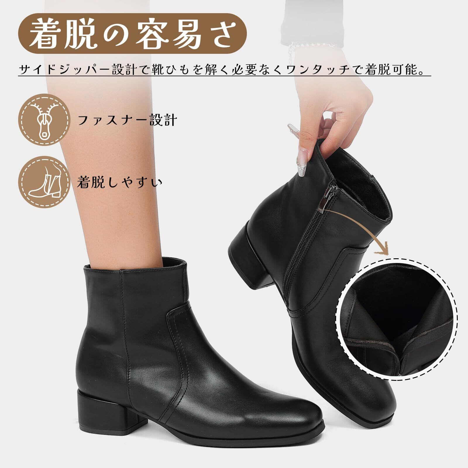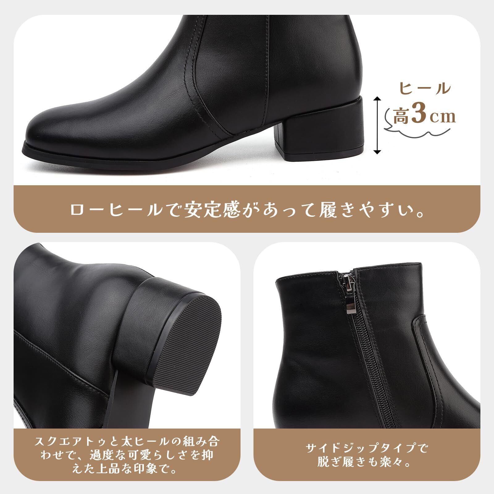 [todaysunny] ブーツ レディース ショートブーツ 厚底 黒 歩きやすい サイドジップ ローヒール ハイカット スクエアトゥ 革靴 防水 女性用 秋 冬 大きいサイズ 美脚 柔らかい boots for women