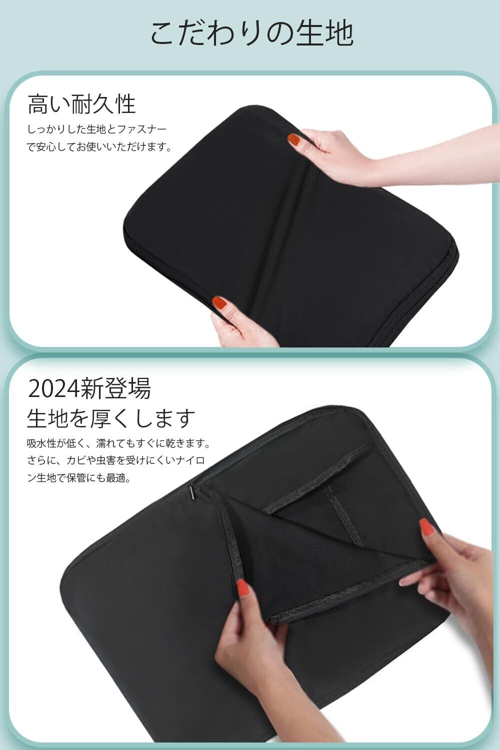 【防水機能&トラベルポーチ】AMZPuls圧縮バッグの外側は、防水素材が使われています。万が一、水が掛かっても中の衣類は安心!少し濡れた衣類も収納することができる。これが非常に便利です!