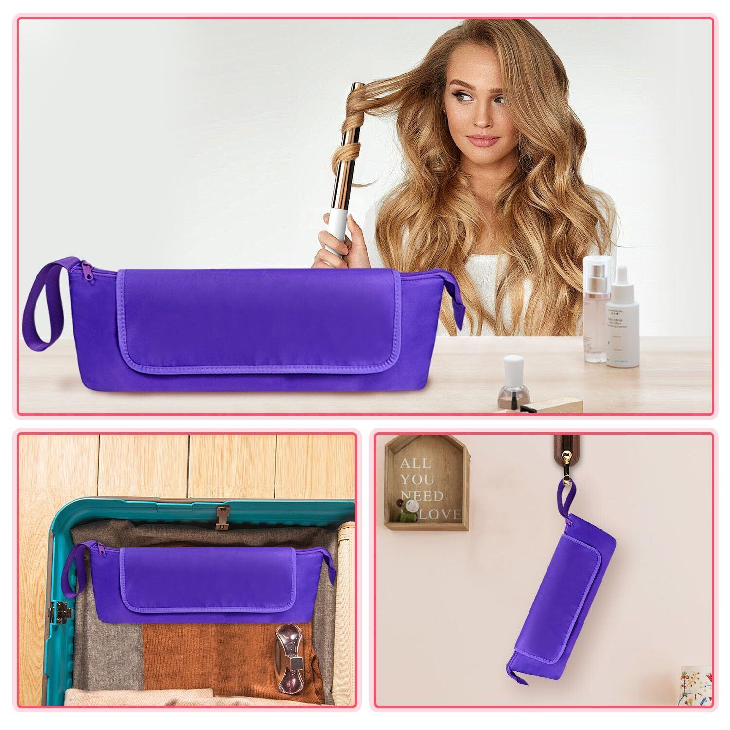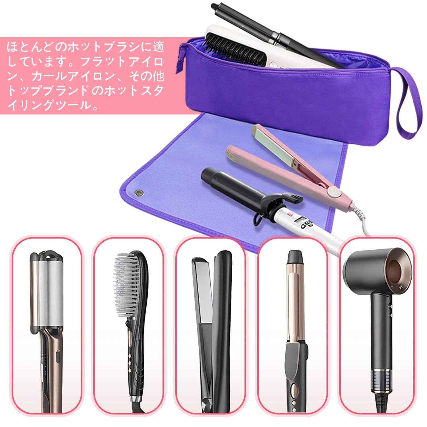 ヘアツール トラベル オーガナイザー バッグ 耐熱マット付き 2-in-1 トラベル キャリング ストレージ ケース フラットアイロン、ストレートアイロン、ヘアアイロン、ヘアドライヤー、スタイリングツール、ヘアケアアクセサリー用 (ホワイト) (パープル)