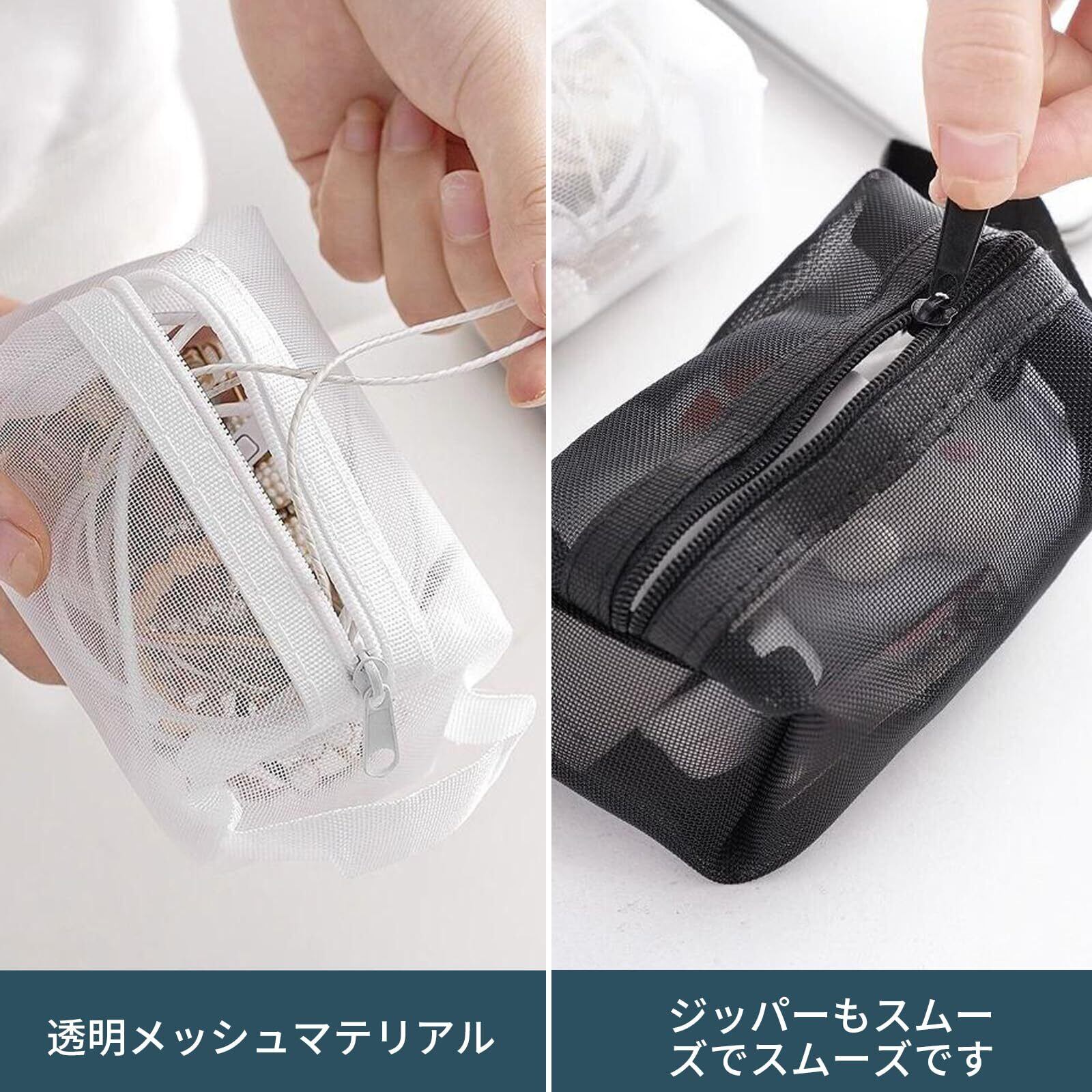 【透明ポケット】ポータブルスクエアメッシュオーガナイザーバッグは、中身が見やすい透明デザイン。欲しいアイテムがすぐに見つかり、探す手間が省けます