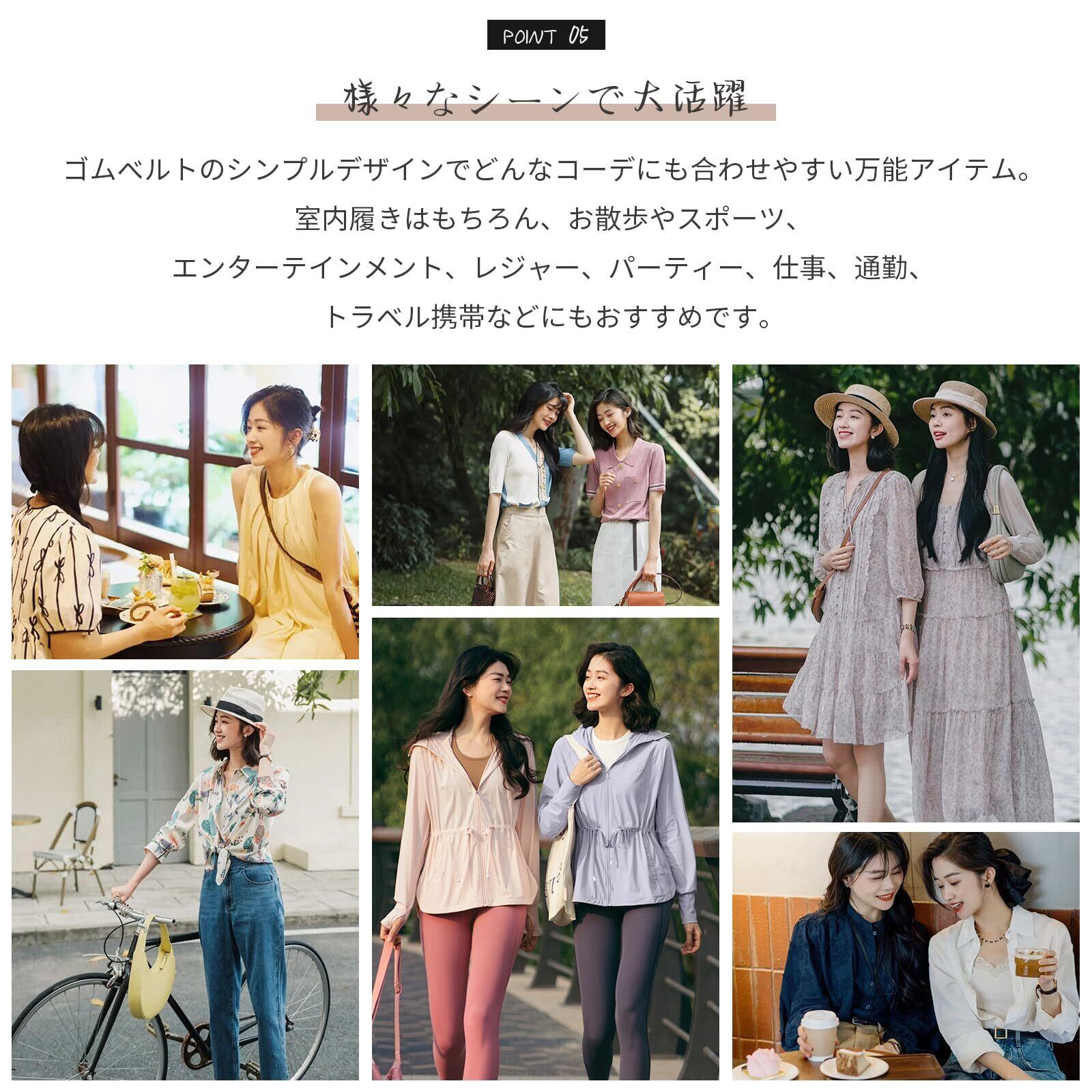 【ゴムベルトでピッタリFIT】ゴムバンドで簡単に着脱でき、足の形により適しています。甲でクロスするデザインは脚を長くきれいに見せてくれます。ゴムサンダルはゴムの幅は広めに設定することによって足がむくんでしまった時の足への食い込みを軽減、尚且つホールド感もアップします。