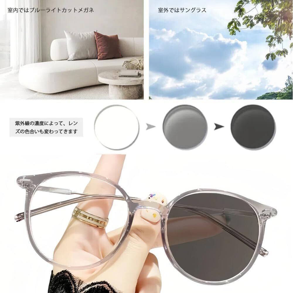 [FEISEDY] 伊達メガネ ブルーライトカット メガネ 調光レンズ 度なし 変色 大きめ 超軽量 室内/室外 pcメガネ UVカット 紫外線カット パソコン用メガネ おしゃれ メンズ レディーズ B1239