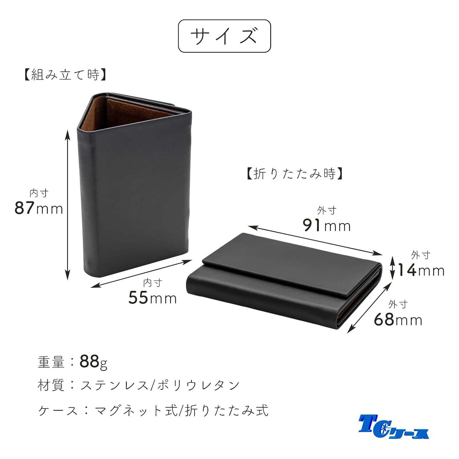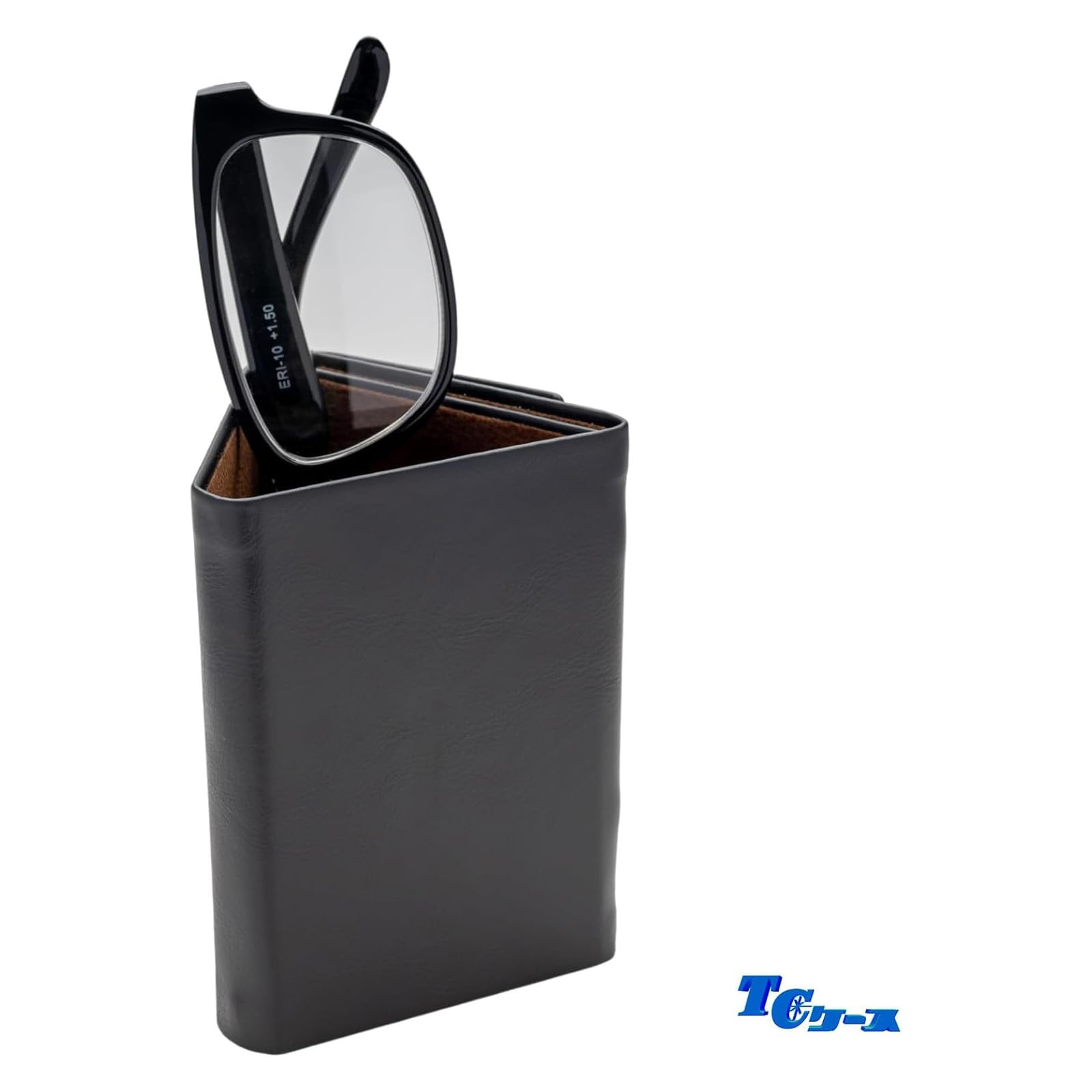 テーシーケース メガネスタンド おしゃれ 折り畳み 眼鏡スタンド ハード ケース ステンレス PU ブラック 名刺サイズ HY-8198ST-2