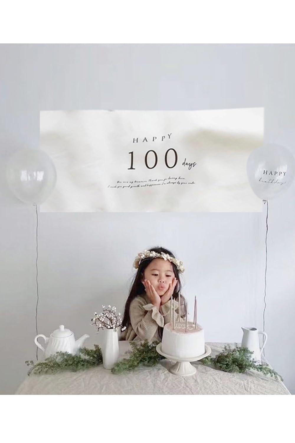 LIKENNY ハーフバースデー タペストリー happy birthday 壁掛け 100日祝い 100日タペストリー 飾り付け 誕生日 記念日用 ハンドメイド フック貼り付けツール付き(横版100日)
