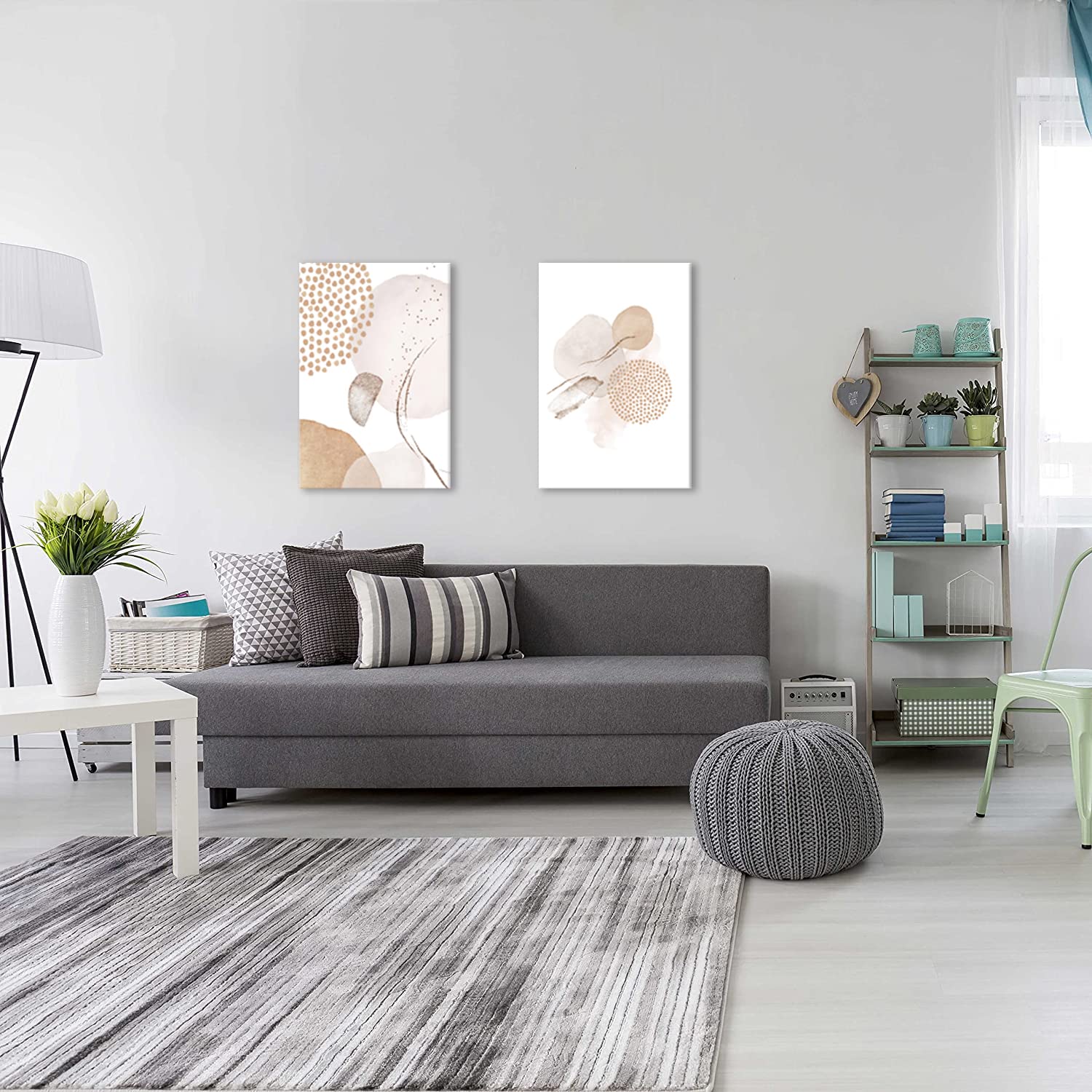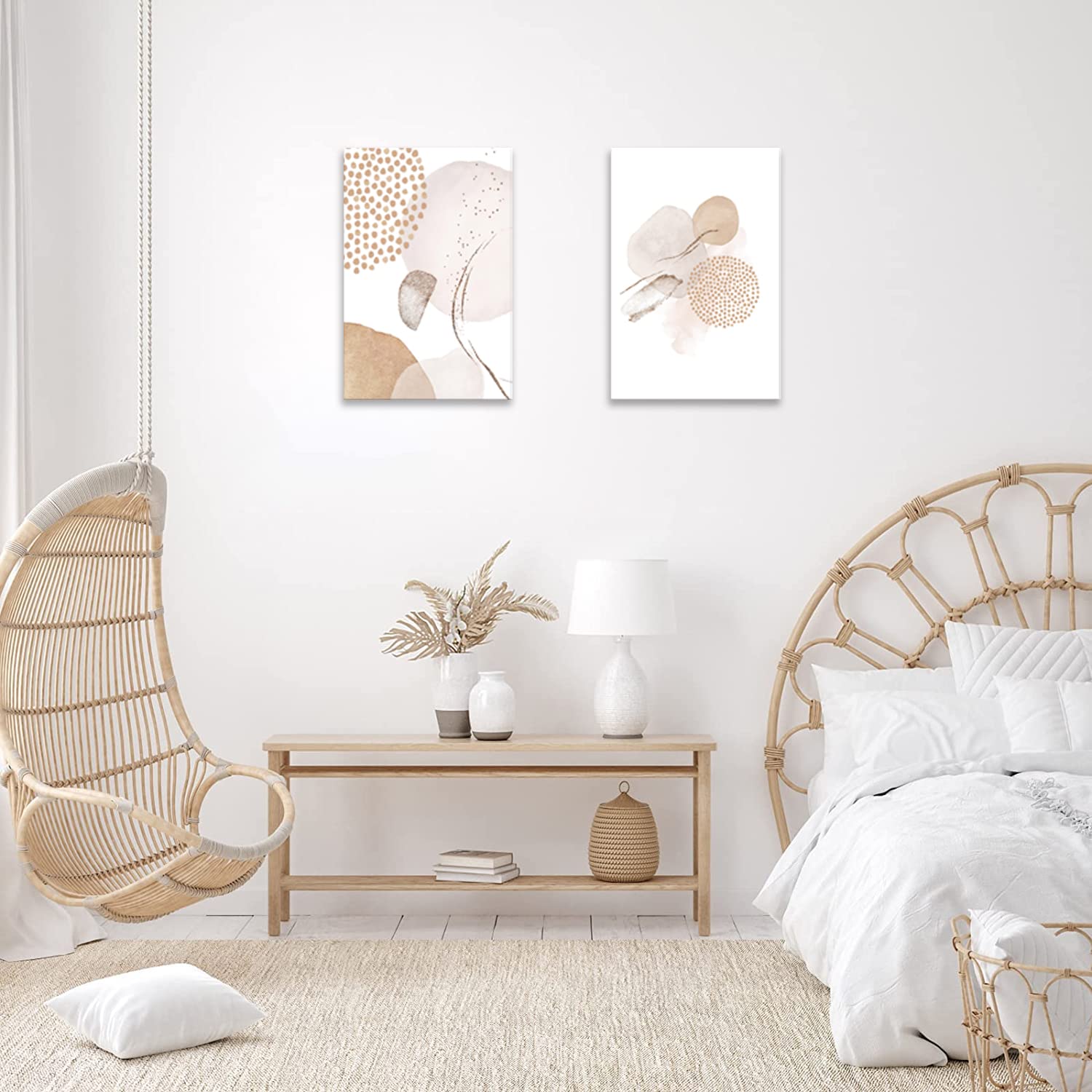 壁掛け 北欧 植物 木 ベージュ 抽象 絵画 2枚 額付き モノクロ アートポスター 部屋 装飾 壁絵 木枠付きの完成品 (30x40cm x2Pcs)