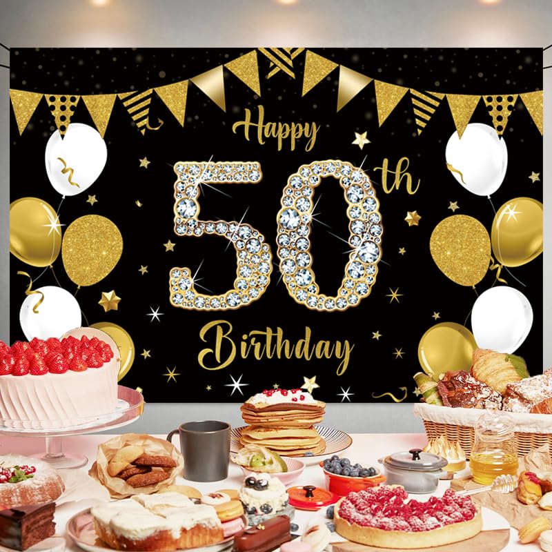 50歳 ブラックゴールド バースデー タペストリー 誕生日 飾り付け タペストリー おしゃれ 知命 誕生日 壁掛け 写真背景 Happy Birthday パーティー フォトポスター おうちスタジオ 180x120cm