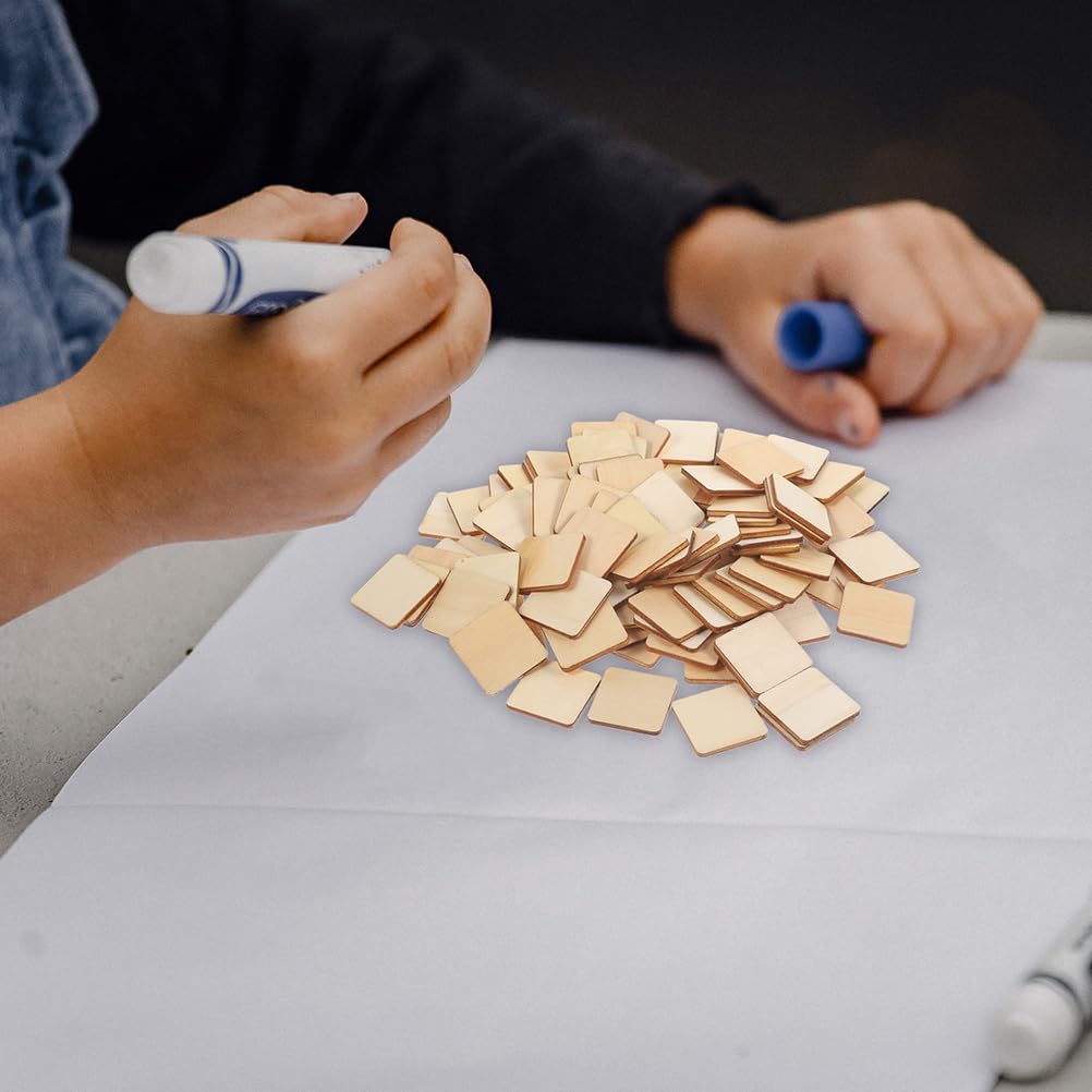 安全で耐久性のある天然木素材で製造されています。友達と一緒にDIYを楽しんでください。工芸品用のミニブランク木製正方形、100個の未完成の木製正方形、子供の工芸品ドアハンガーシグペイント用のDIY木製ピース切り抜き。