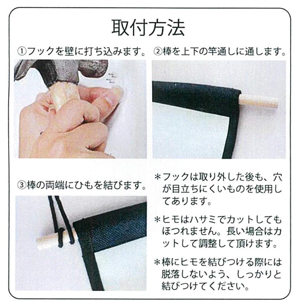 取り付けに必要な紐、棒、画鋲は同梱されております。