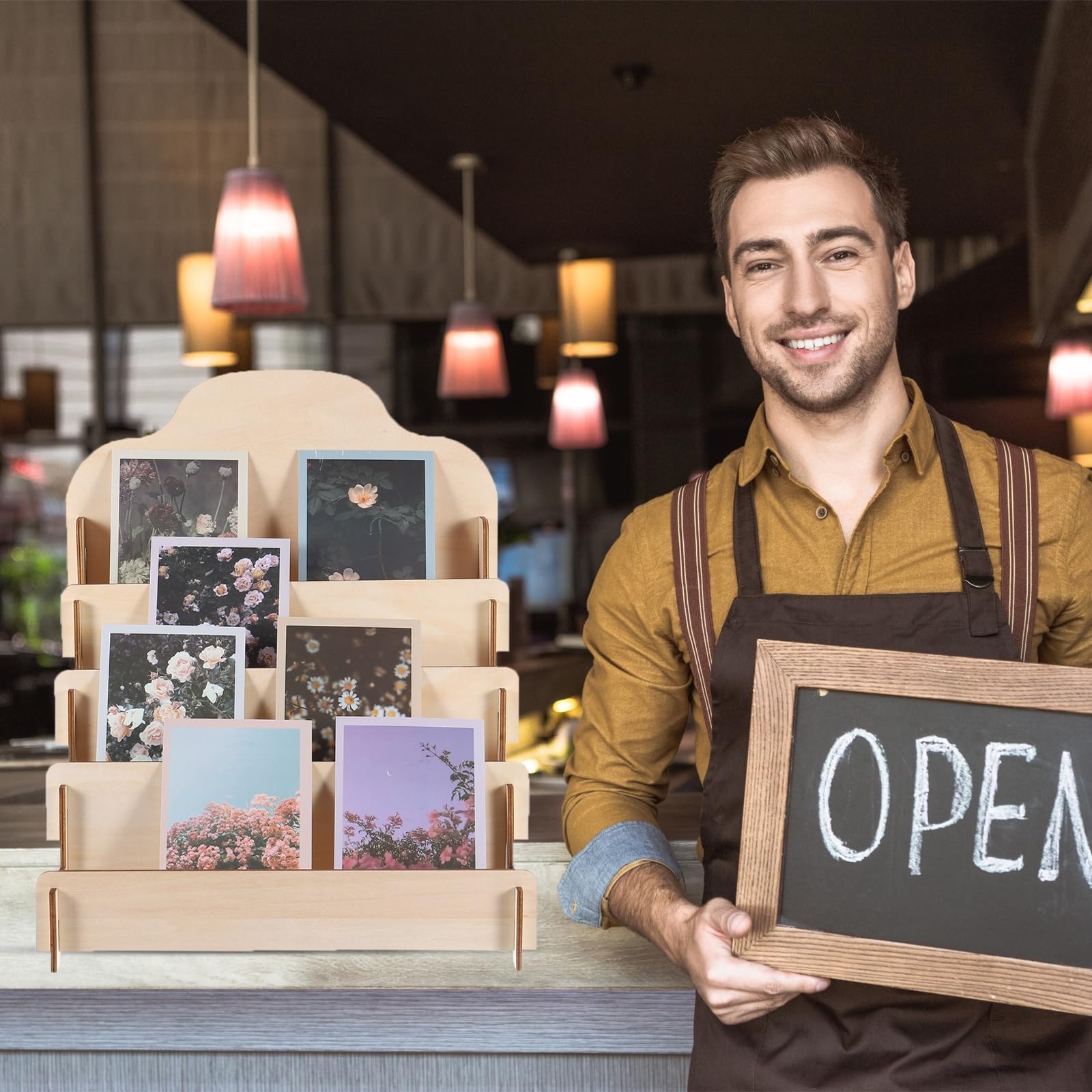 木製ディスプレイスタンドはさまざまな種類のご挨拶カードを保持でき、パーティー、小売、展示会、家庭収納、贈り物など、多くの人に適した多目的スタンドです。