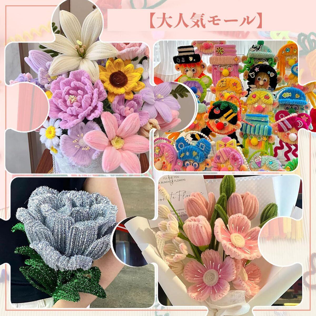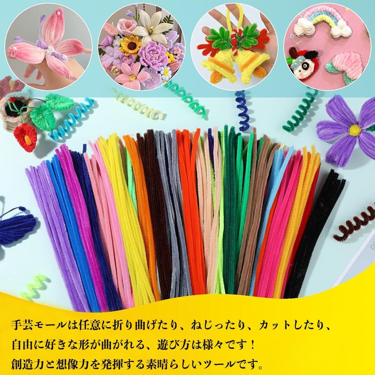 【大人気モール】手芸モールは任意に折り曲げたり、ねじったり、カットしたり、自由に好きな形が曲がれる、遊び方は様々です!子供たちの創造力と想像力を発揮する素晴らしいツールです。学校と幼稚園の手作り課程や美術課程に手作り用品として大人気!男の子や女の子の創造性や実践力を高めるだけでなく、両親との関係も促進します。