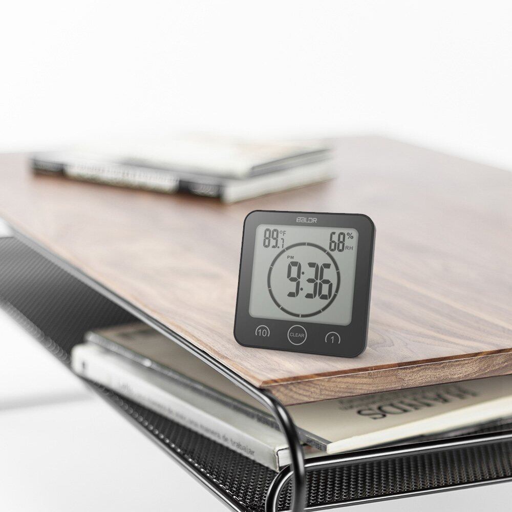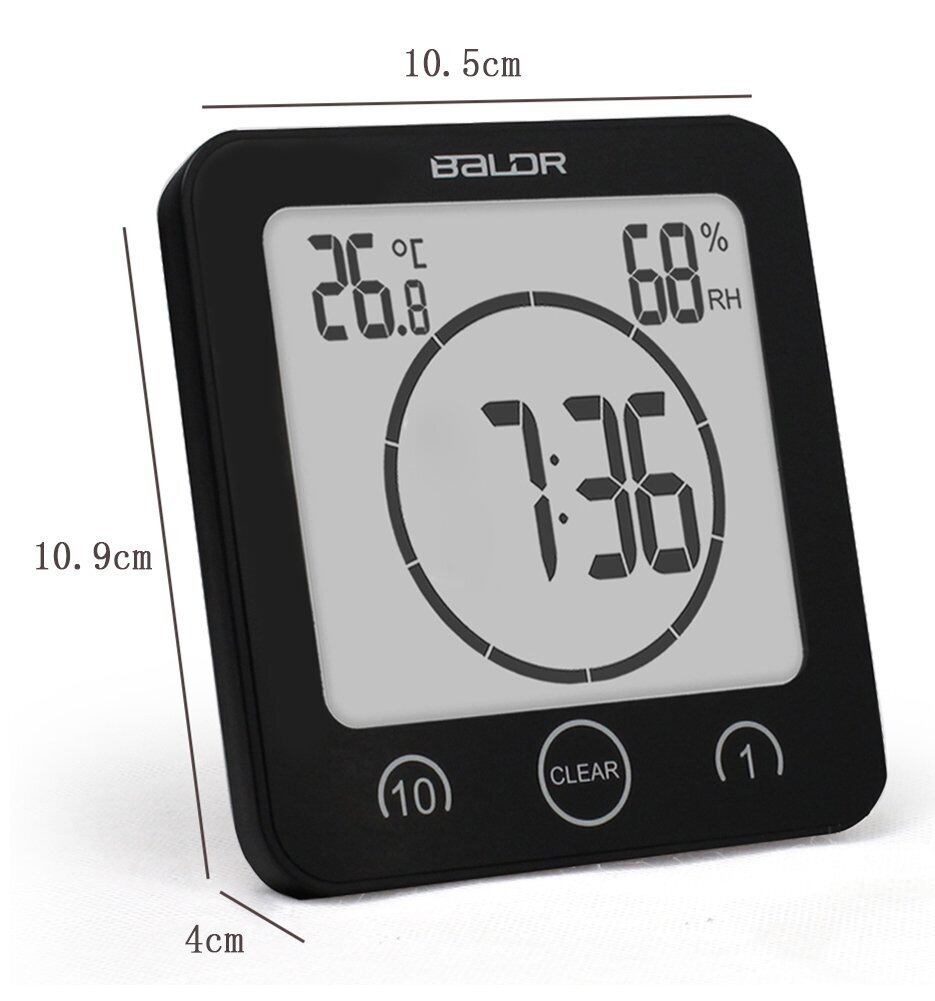 BaLDR 防水時計 お風呂 シャワーデジタル時計 タイマー 温度湿度計 置き掛け 貼り付け 吸盤 防滴 防塵 (ブラック)