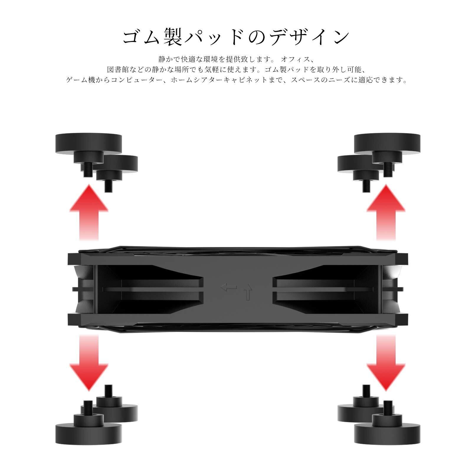 【安定で静音】九枚羽根の大きいブレームを採用、抜群な冷却効果を確保です。冷却効果UP! 超静音設計で、動作中の騒音は最大18dbです。オフィス、自習室、図書館などの静かな場所でも安心して気軽に使えます。