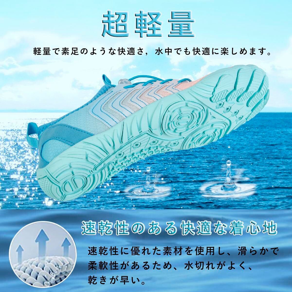【軽量で履きやすい】軽量なマリンシューズは足への負担を軽減し、素早く簡単に着脱でき、ストレスゼロで足の疲れもなく、自由で楽な歩行を実現します。