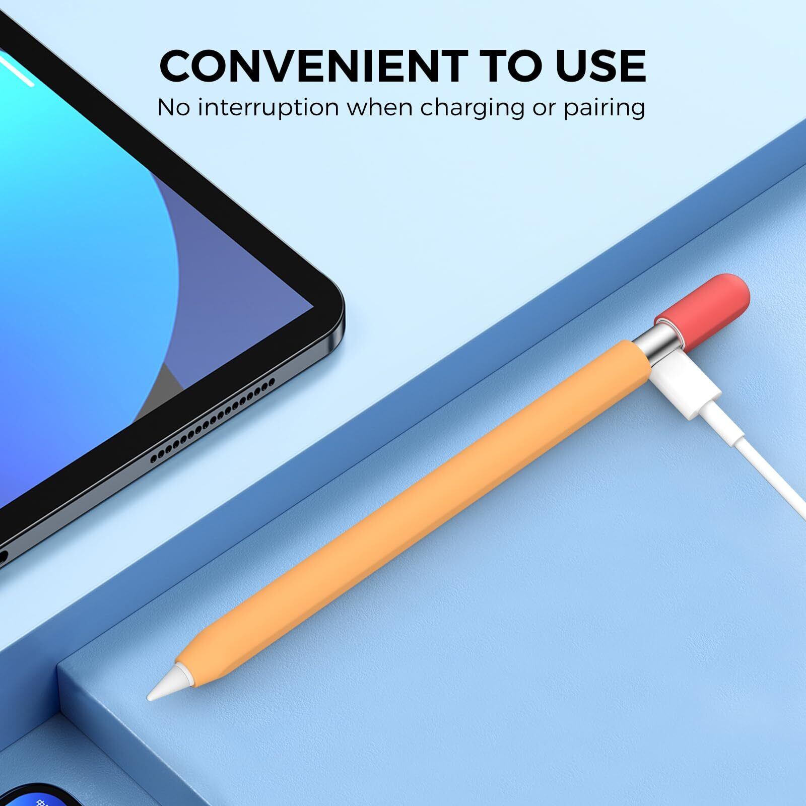 AhaStyle 超薄型 Apple Pencil (USB-C) シリコン保護ケース 滑り止め Apple Pencil (USB-C) 2023のみに適用 ツートンカラー (二色1本, オレンジ+赤)