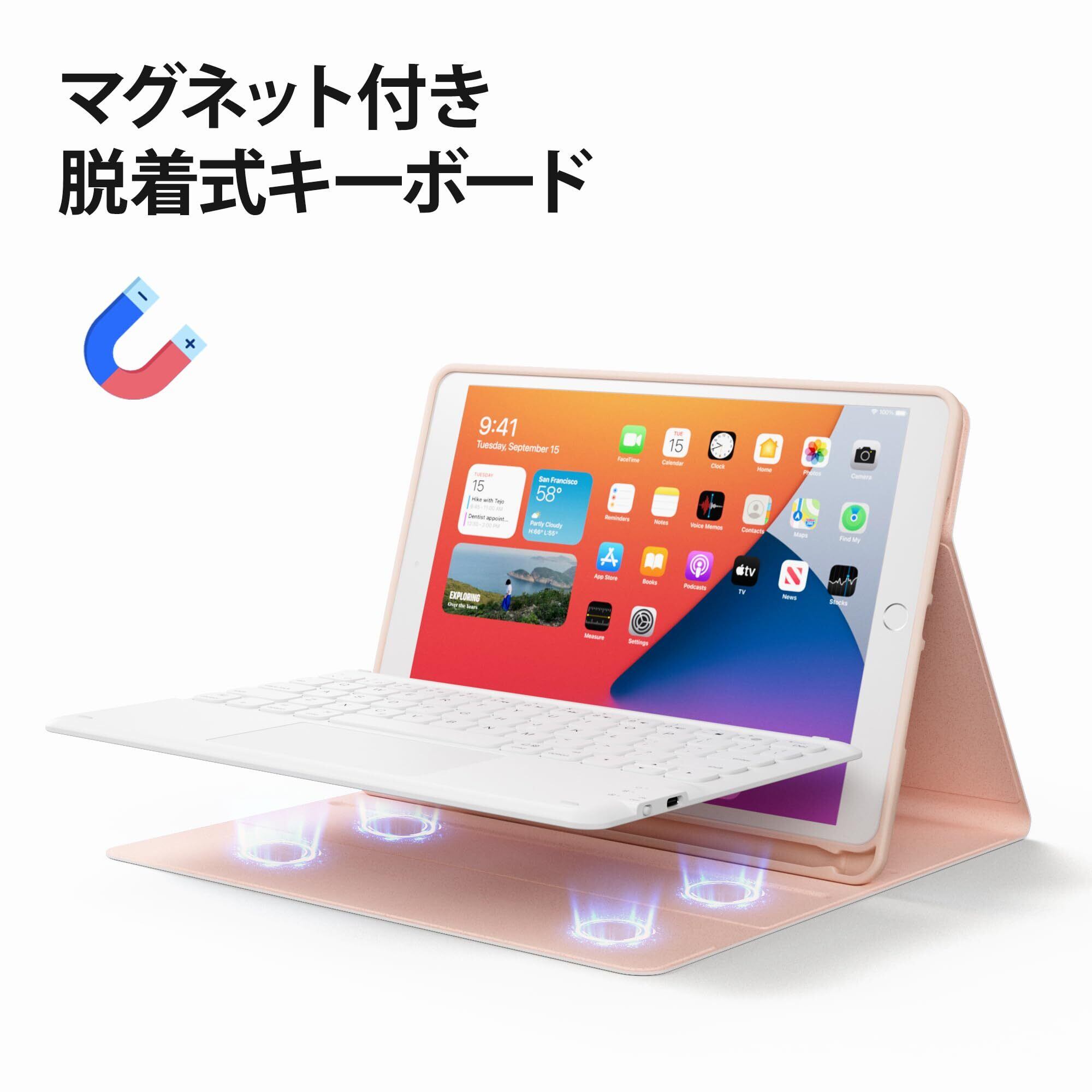 iPad 9世代 キーボード iPad 8/7/世代10.2キーボード[2021/2020/2019モデル] BTキーボードカバー 脱着式 多角度調整 傷つけ防止 耐久性 [ペンシルホルダー付き] 最新型スマート 丸い 可愛いキー マグネット付きワイヤレスアイパッド ピンク