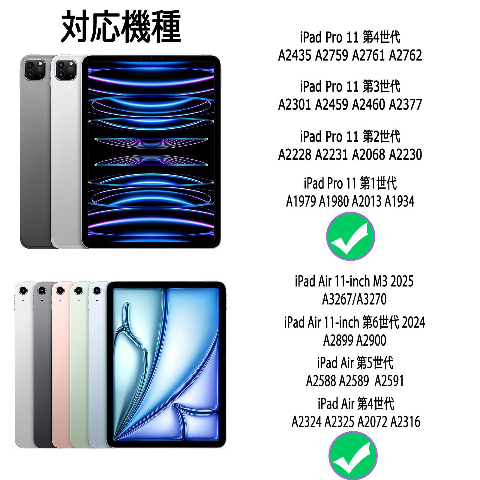 iPad Air 10.9(第5/4世代), iPad Air 11 M3 M2(第7/6世代), iPad Pro 11(第1、2世代), iPad Pro 11(第3世代), iPad Pro 11(第4世代)