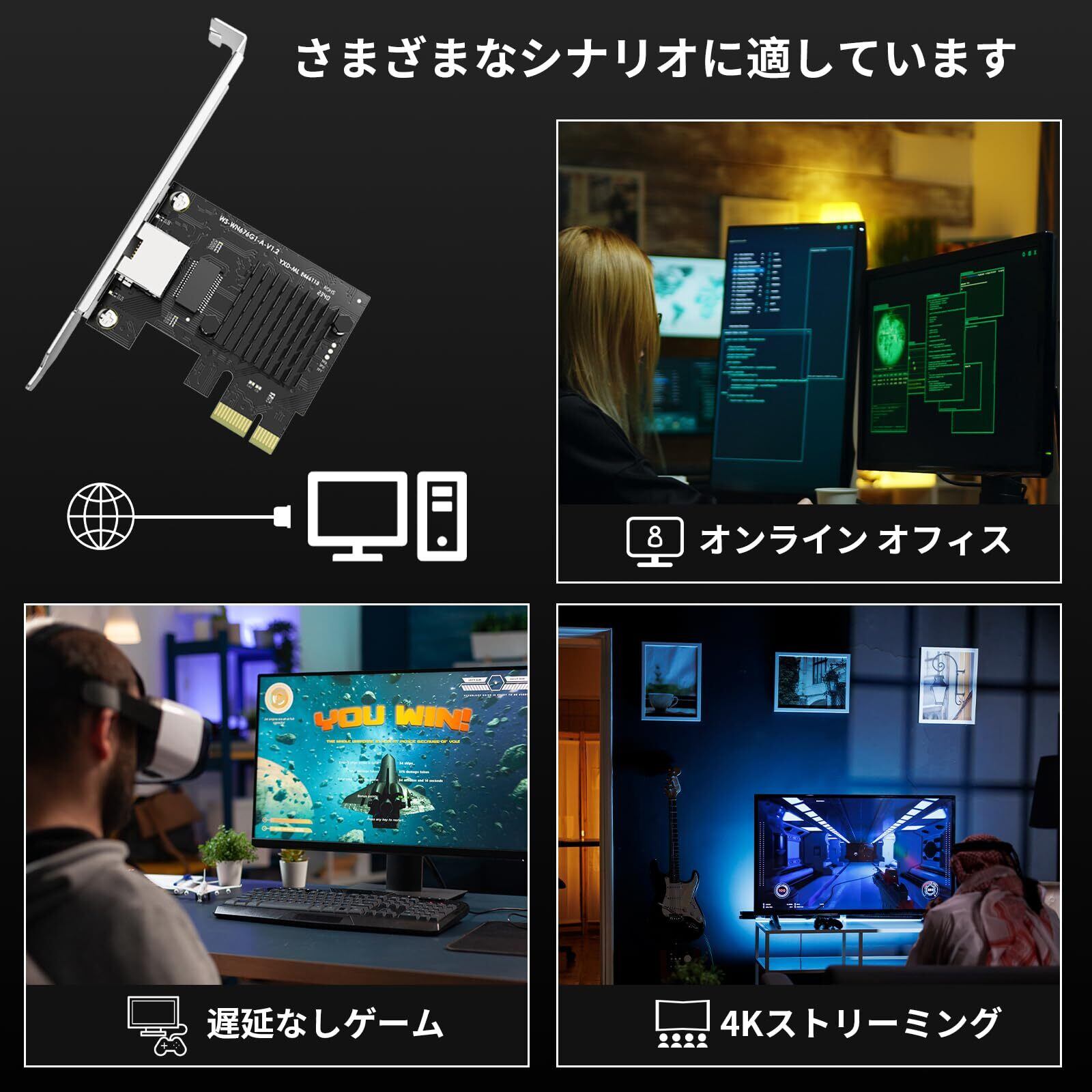 2.5G 高速伝送: この 2.5G ネットワーク カードは、従来のギガビット レートの最大 2.5 倍の速度を提供し、ネットワーク伝送速度の新しい時代を切り開きます。優れたオンライン エクスペリエンスを提供し、迅速なファイル転送、シームレスな HD ビデオ ストリーミング、遅延のないオンライン ゲームをします。
