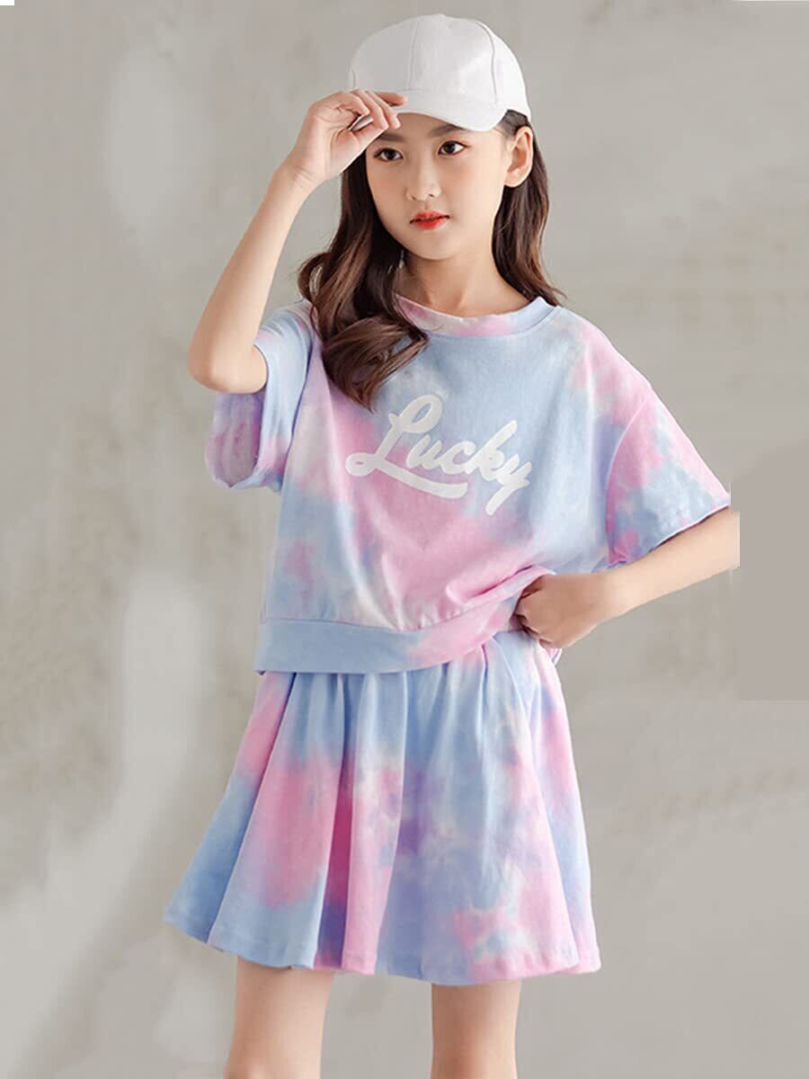 ベーシックな半袖トップスやショート丈パンツとの女の子夏用のセットアップです。セットの下はスカートのようにデザインされたショートパンツなので、女の子らしい可愛さをアピール。