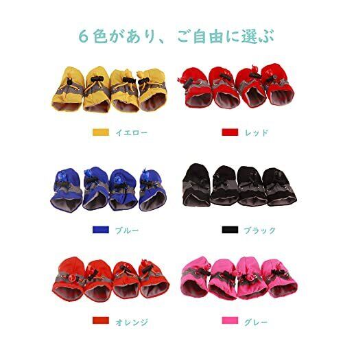 犬 猫 ペット 用 靴 シューズ 犬靴 ドッグブーツ ドッグシューズ 保護シューズ 滑り止め 通気性 お散歩 お出かけ 室内 肉球保護 足保護 4個セット 小型犬 中型犬 大型犬 (A1イエロー, 2XL)