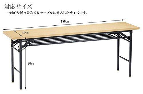 ●110cmx240cmのテーブルクロスは、幅180×奥行き45×高さ70cmの一般的な折り畳み式長テーブルを基準としたサイズです。 また、テーブルクロスは15~30cm程度垂らしてお使いいただくと、キレイに見えます。 垂れが15cm以内であれば幅180×奥行き45×高さ70cm意外のテーブルでもお使いいただけます