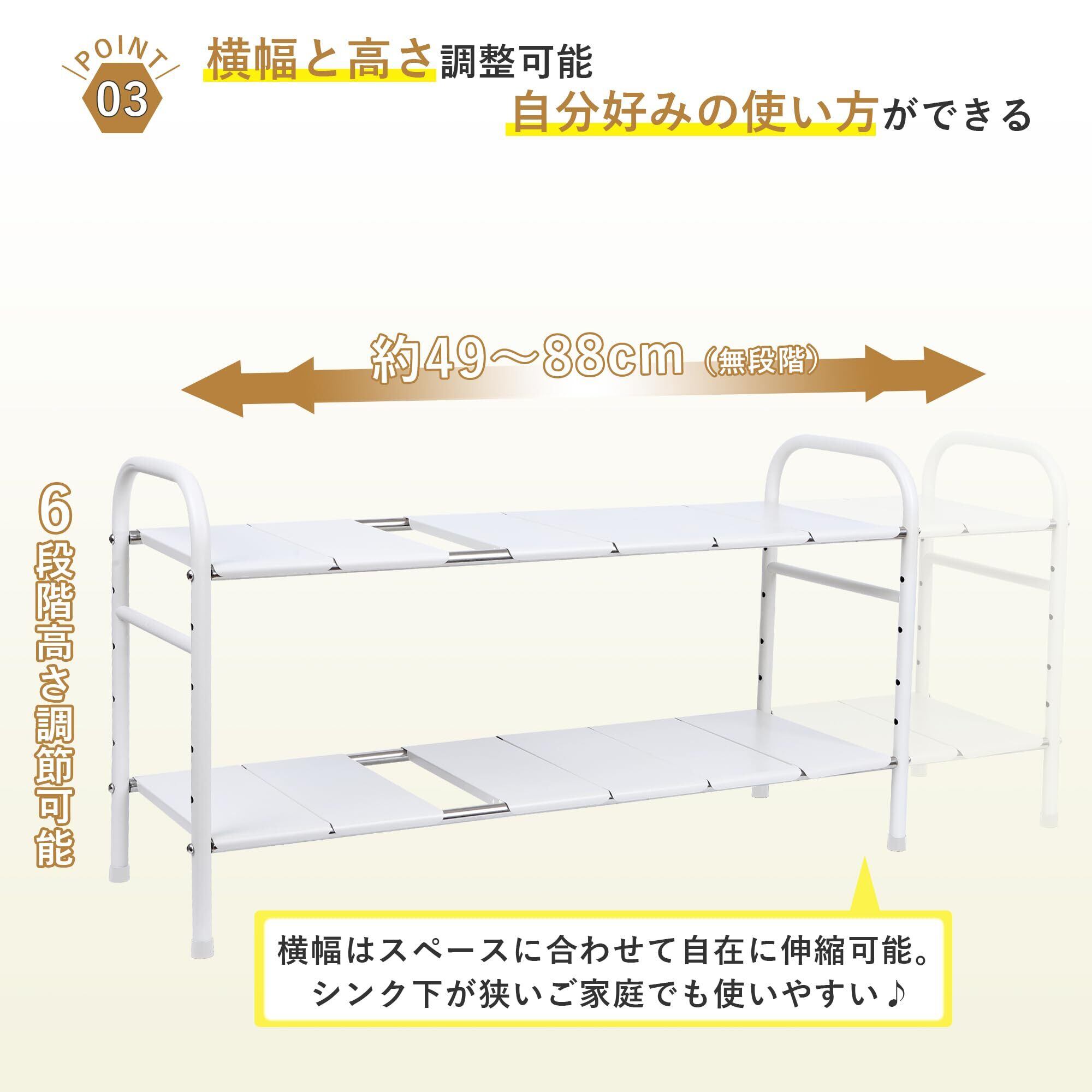 チチロバ(Titiroba) (TITIROBA) シンク下 収納 ラック シンク下収納 伸縮 2段 キッチン 簡単組立 シンク下伸縮棚 洗面台下 棚 収納ラック キッチンラック 高炭素鋼 ホワイト 幅49~88×奥行24.5×高さ41.5cm