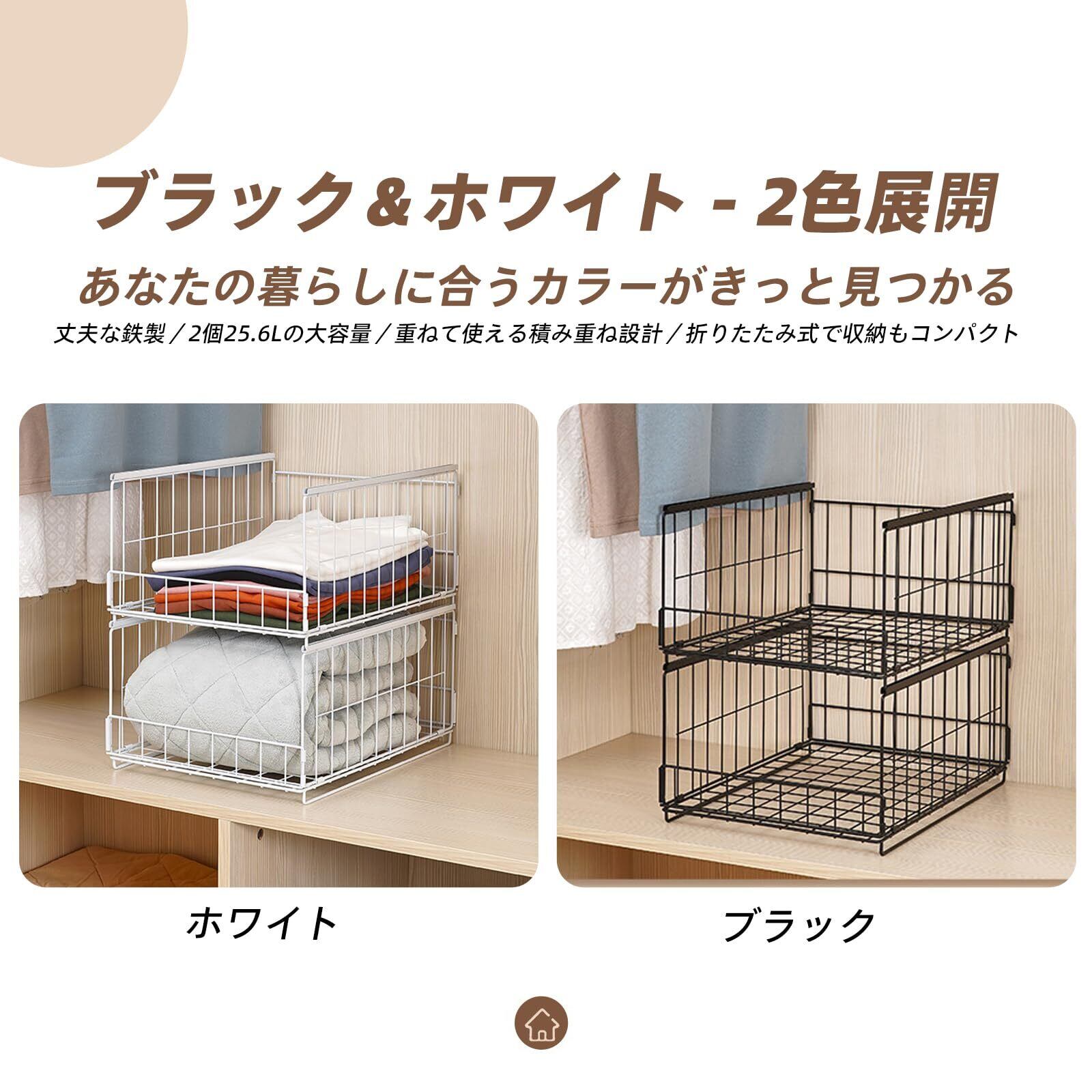 NATTY NING 大容量25.6L×2個組 折り畳み式 積み重ね可能 鉄製 メッシュ可視化 簡単組立 押入れ クローゼット収納 ワンタッチ引き出し ホワイト (41×30.5×20.5cm)