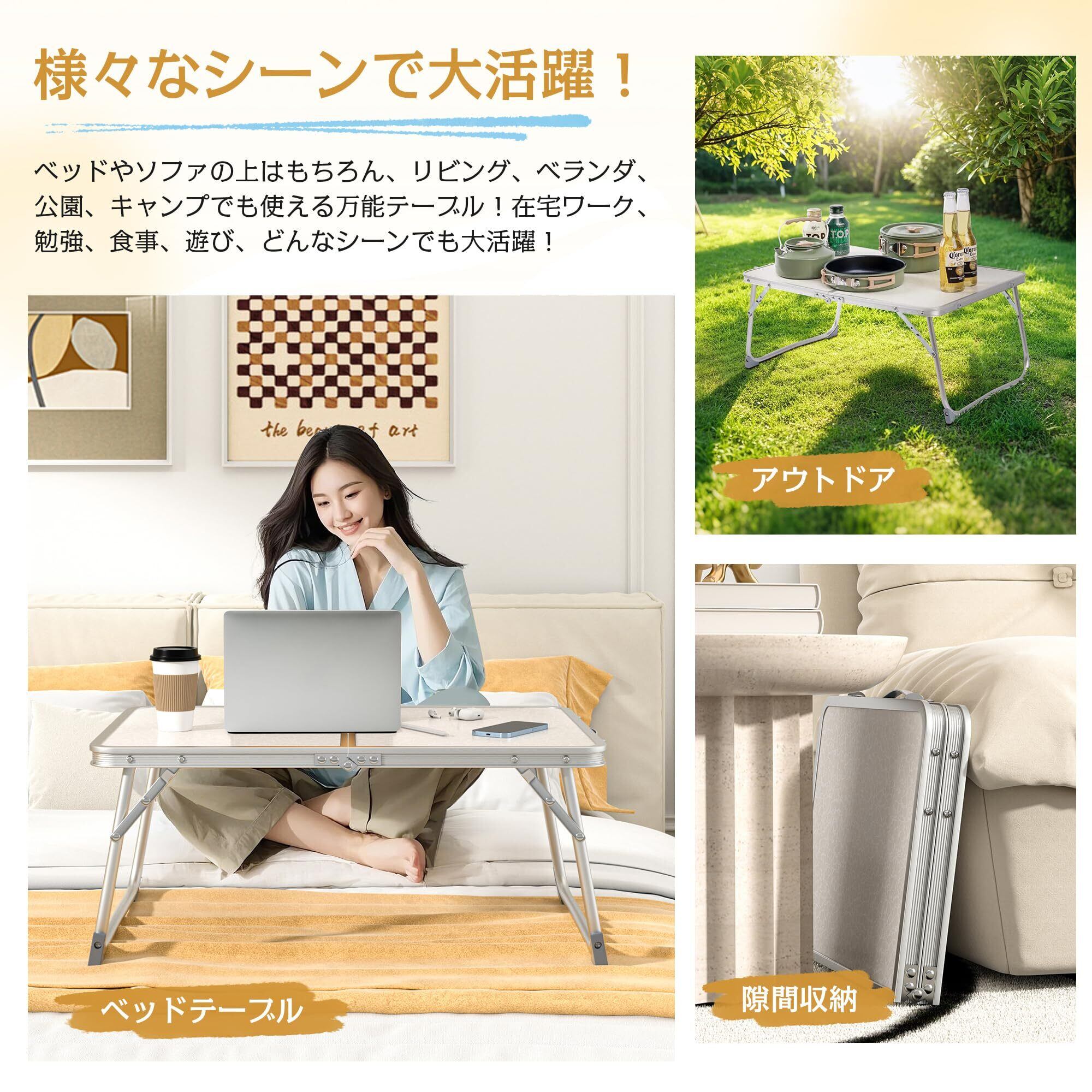 【軽量で持ち運びが簡単】 このベッド上テーブルは軽量な設計で、どこにでも手軽に移動できます。リビングやベランダ、アウトドアなど、様々な場所で便利にお使いいただけます。コンパクトなサイズでありながら、ベッドやソファ上の在宅勤務や子供用など、様々な用途に対応できます。