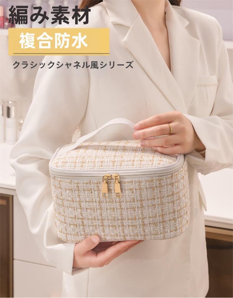 防水素材で清潔をキープ:コスメポーチの裏地は、防水性と耐摩耗性に優れた複合高密度経編みポリエステル防水生地を採用しています。優れた耐摩耗性により、化粧品収納バッグとして長期間ご使用いただけます。化粧品を効果的に保護するだけでなく、他のアイテムへの漏れや汚染も防ぎます。