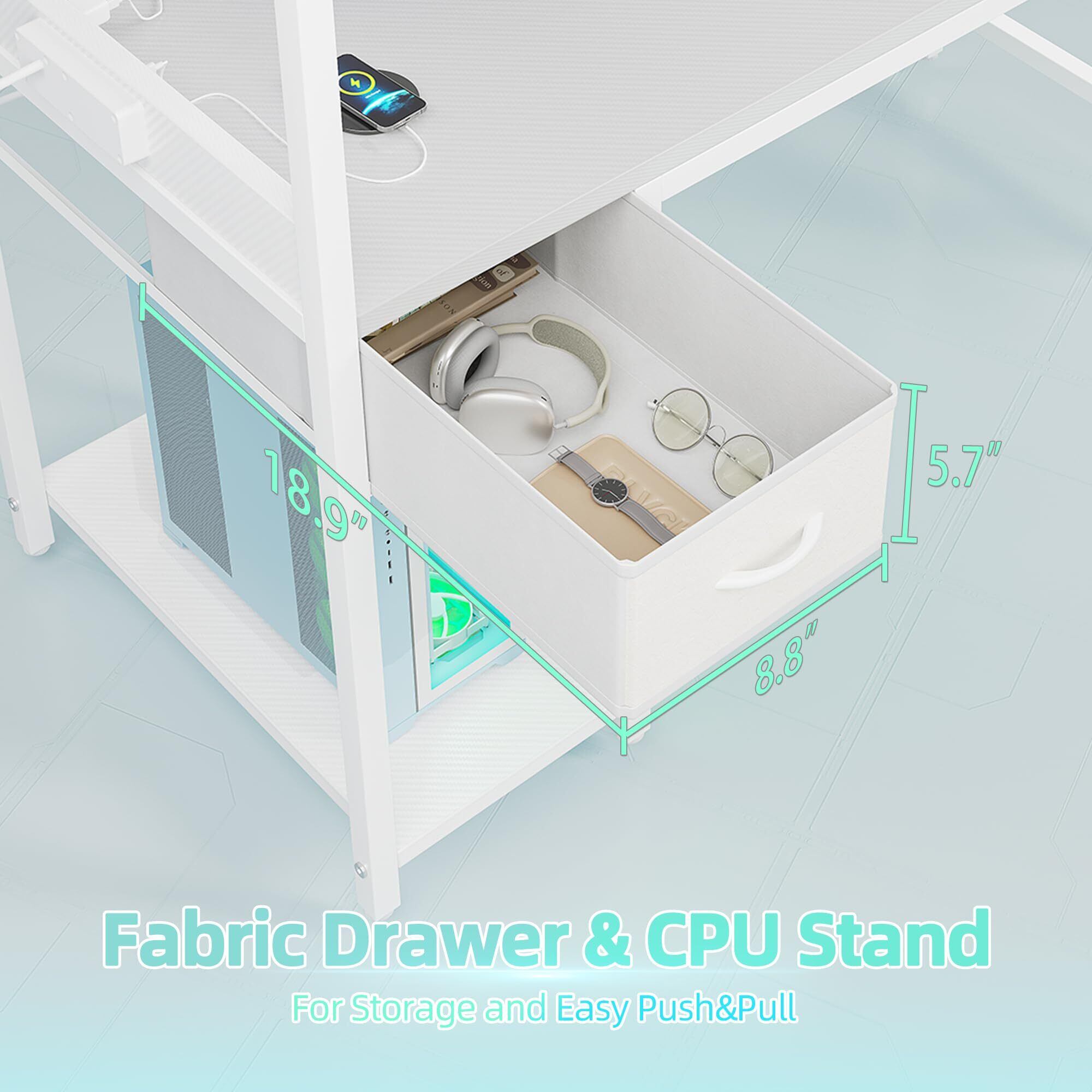 TIQLAB LEDゲーミングデスク 100×50cm - 電源コンセント付き パソコンデスク 大型収納棚 引き出し付き 多機能デスク サイドポケット 2つのフック付き 勉強・ゲーム・仕事・在宅勤務用