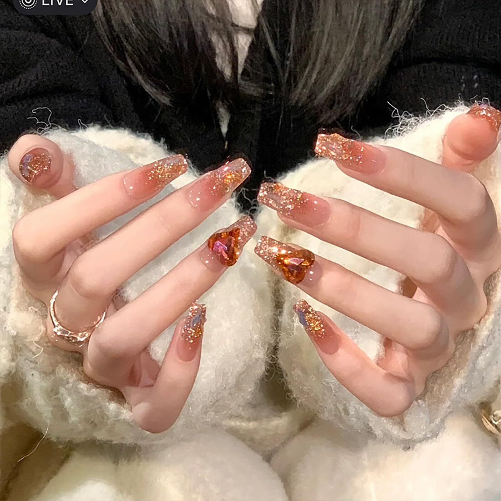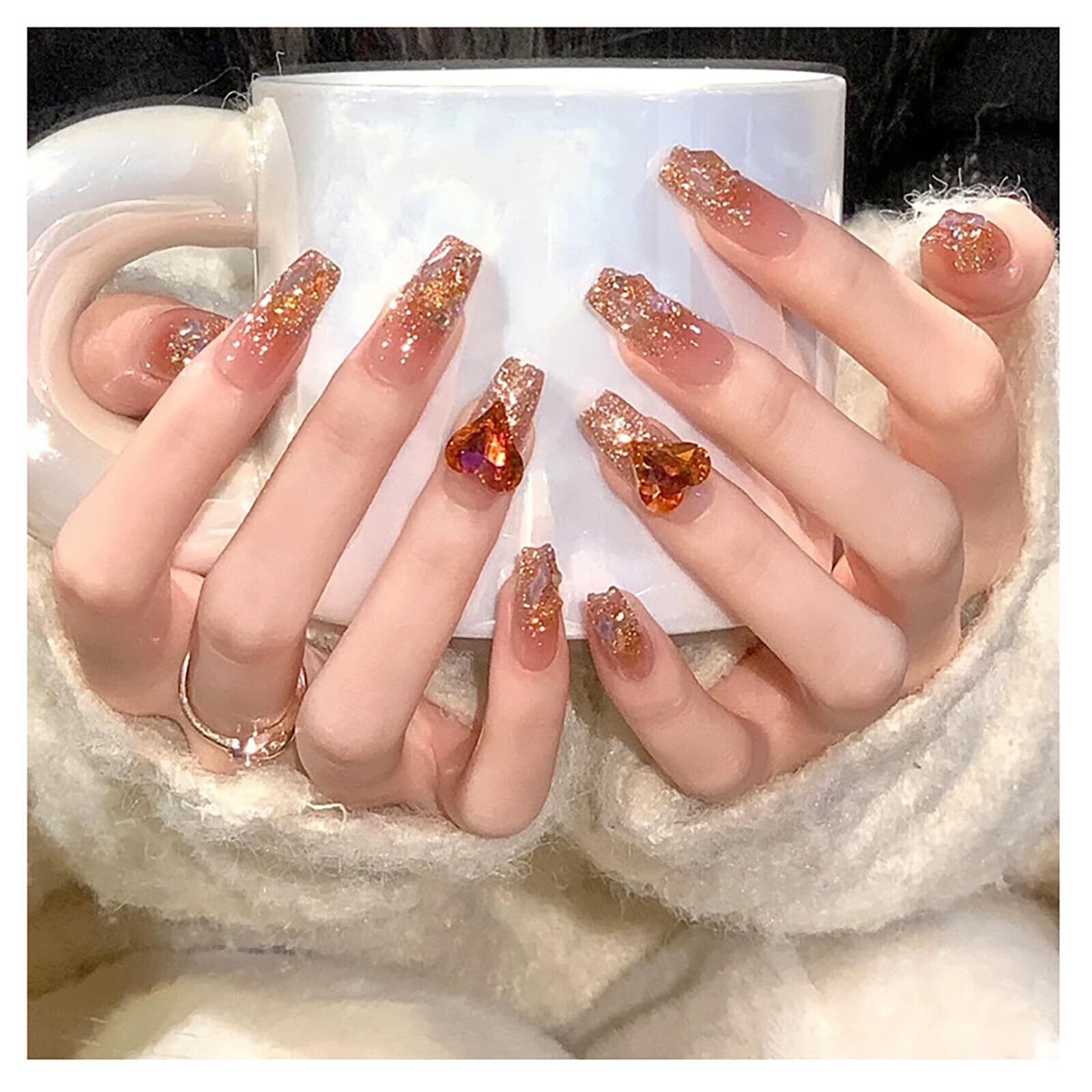 Lwenjing ネイルチップ ロング 24枚入 人気 和風 かわいい シンプル おしゃれ 花嫁ネイル 光沢 つけ爪 両面テープ 成人式 入学式 卒業式 結婚式 ネイルチップ(Z249)