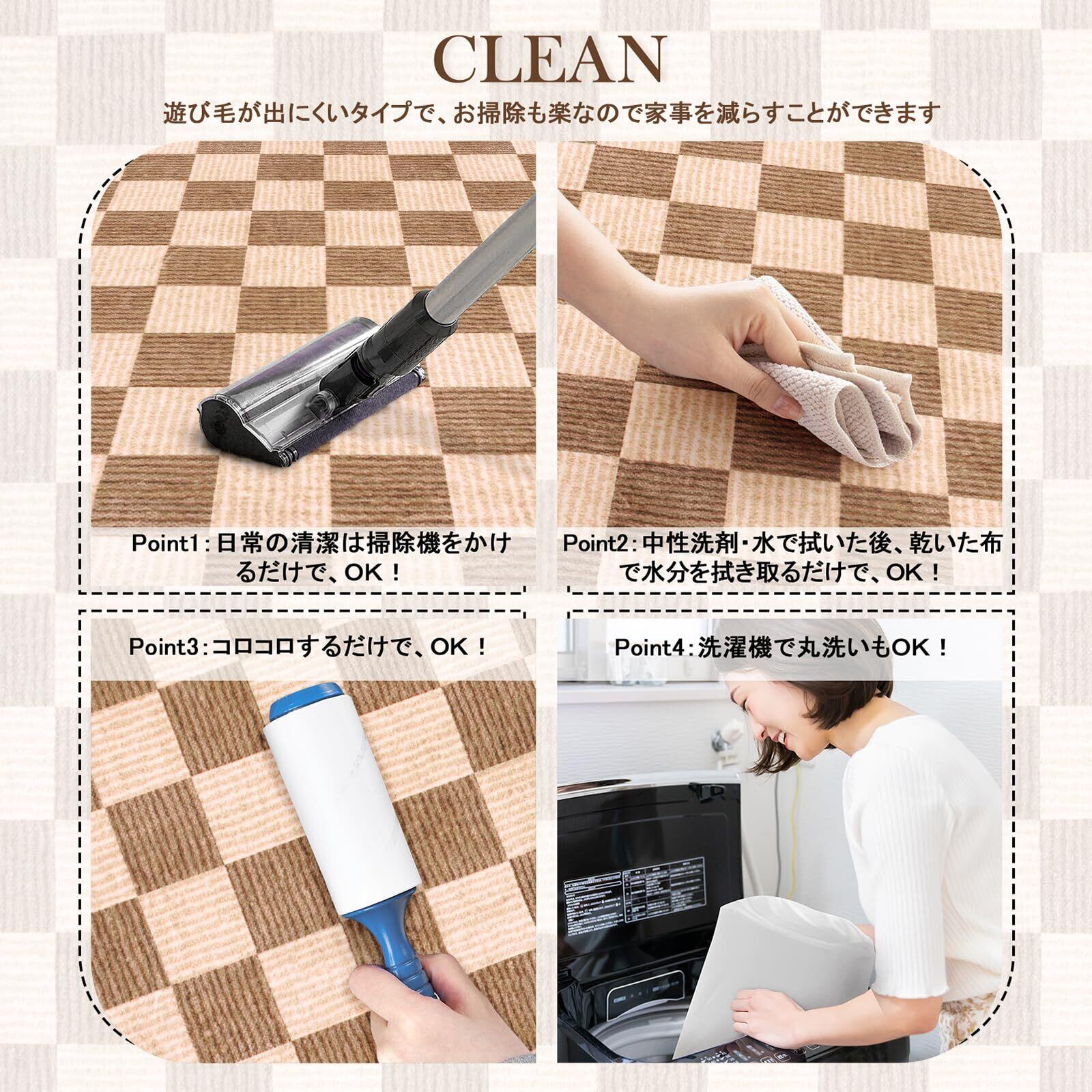 【お手入れ簡単】毛足は短くて密度が高く、ゴミや髪が絡みにくく、日常の清潔は掃除機をかけるだけでキレイ になります。また、汚れた場合は手洗いや洗濯ネットに入れて洗濯機で洗うことができます(ご注意:風通し の良いところで陰干しし、アイロン、乾燥機のご使用をお避け下さい。)