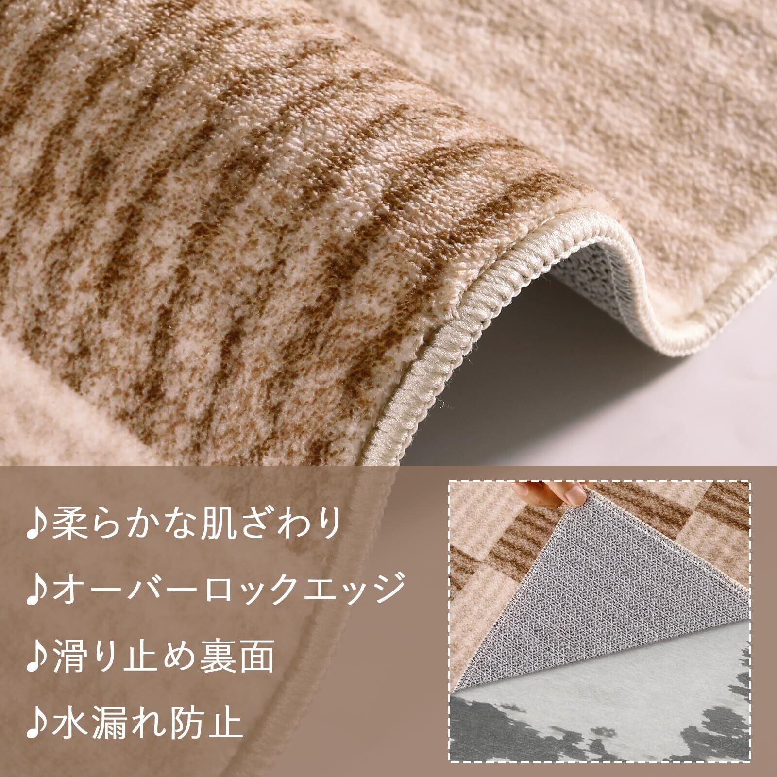 【幅広く活躍】ラグは機械織り製造で、丈夫で破れにくく、床を保護すると同時にインテリアとしても活用できま す。端縁にはオーバーロックの加工を施し、遊び毛が出たり、形を崩れたりしにくく、優れた耐久性を実現 します。また、ほどよい厚さで、オールシーズンお使いできます。ベッドサイド、リビングルーム、ベランダ、やダイニングの テーブルの下など様々なシーンで活躍します
