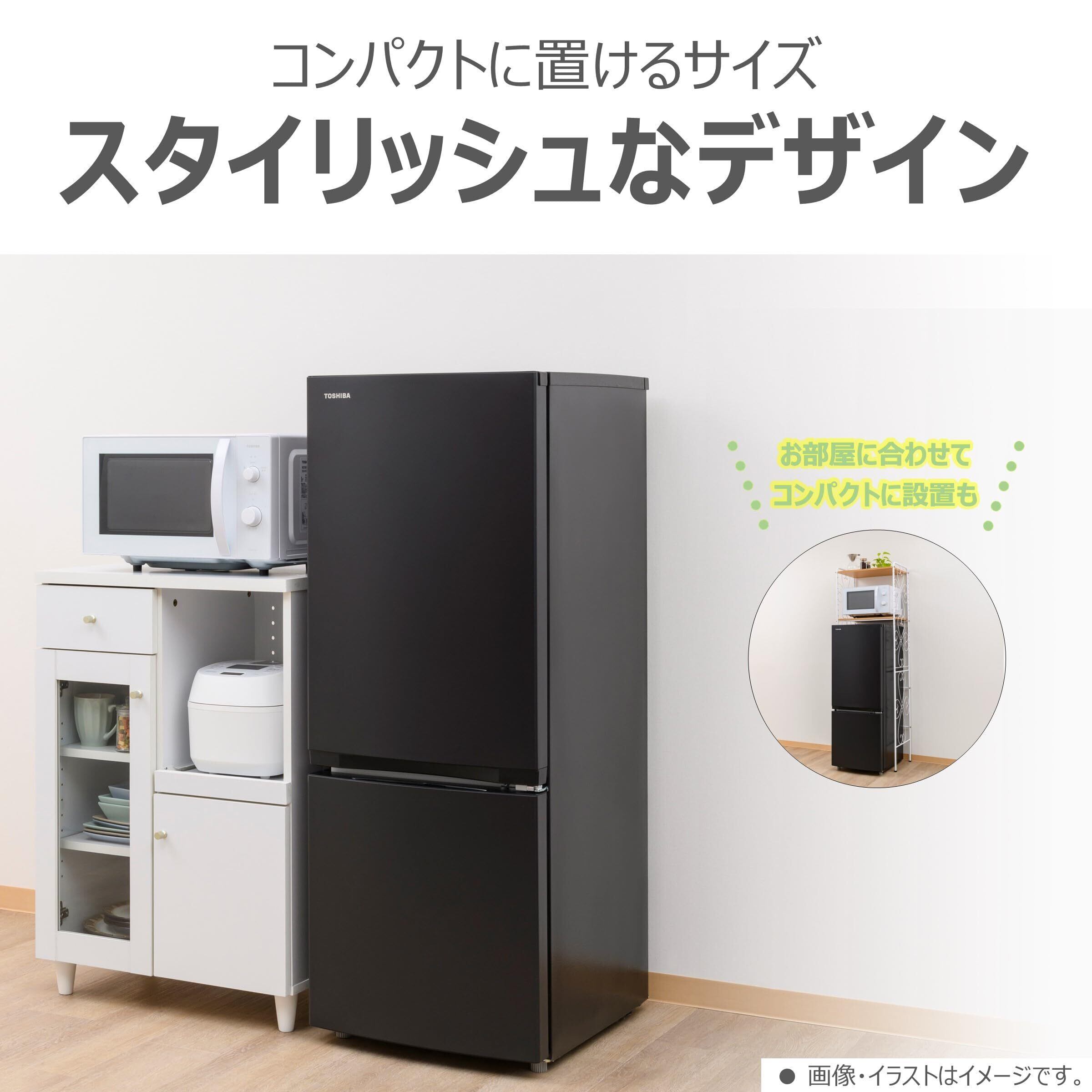 TOSHIBA(東芝) 冷蔵庫 幅47.9㎝ 153L GR-W15BZ1(K) 2ドア 自動霜取り 右開きタイプ ひとり暮らし 省スペース 耐熱天板 2025年モデル セミマットブラック