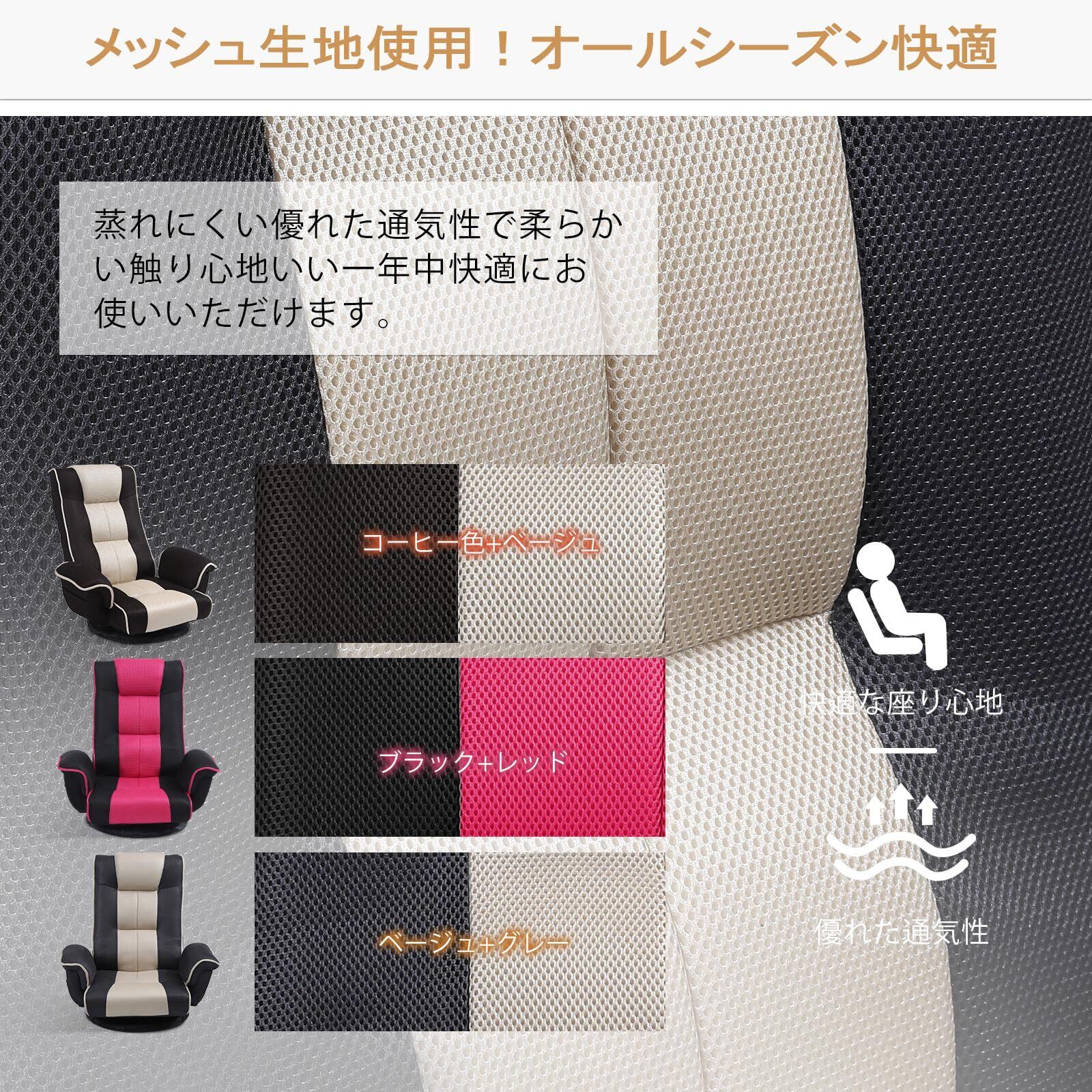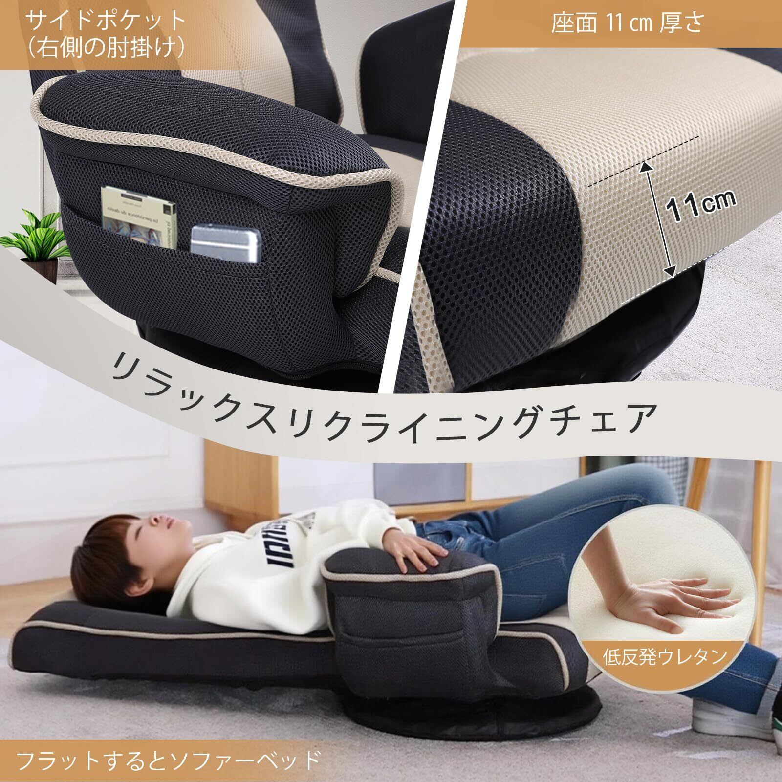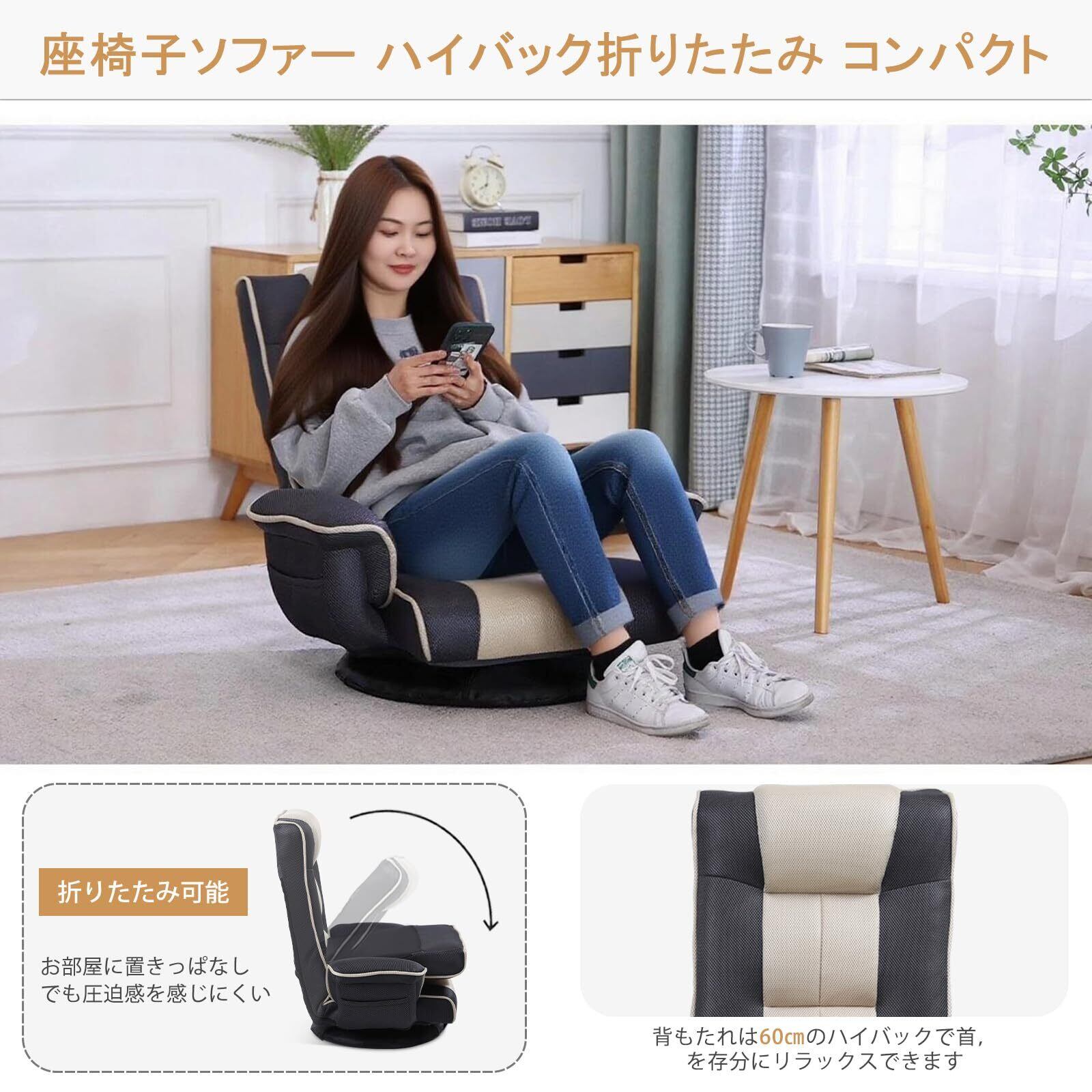 座椅子 回転 肘掛け付き リクライニング ハイバック コンパクト 折りたたみ 座椅子ソファー 一人用ソファー 腰が痛くならない フロアチェア サイトポケット付き メッシュ