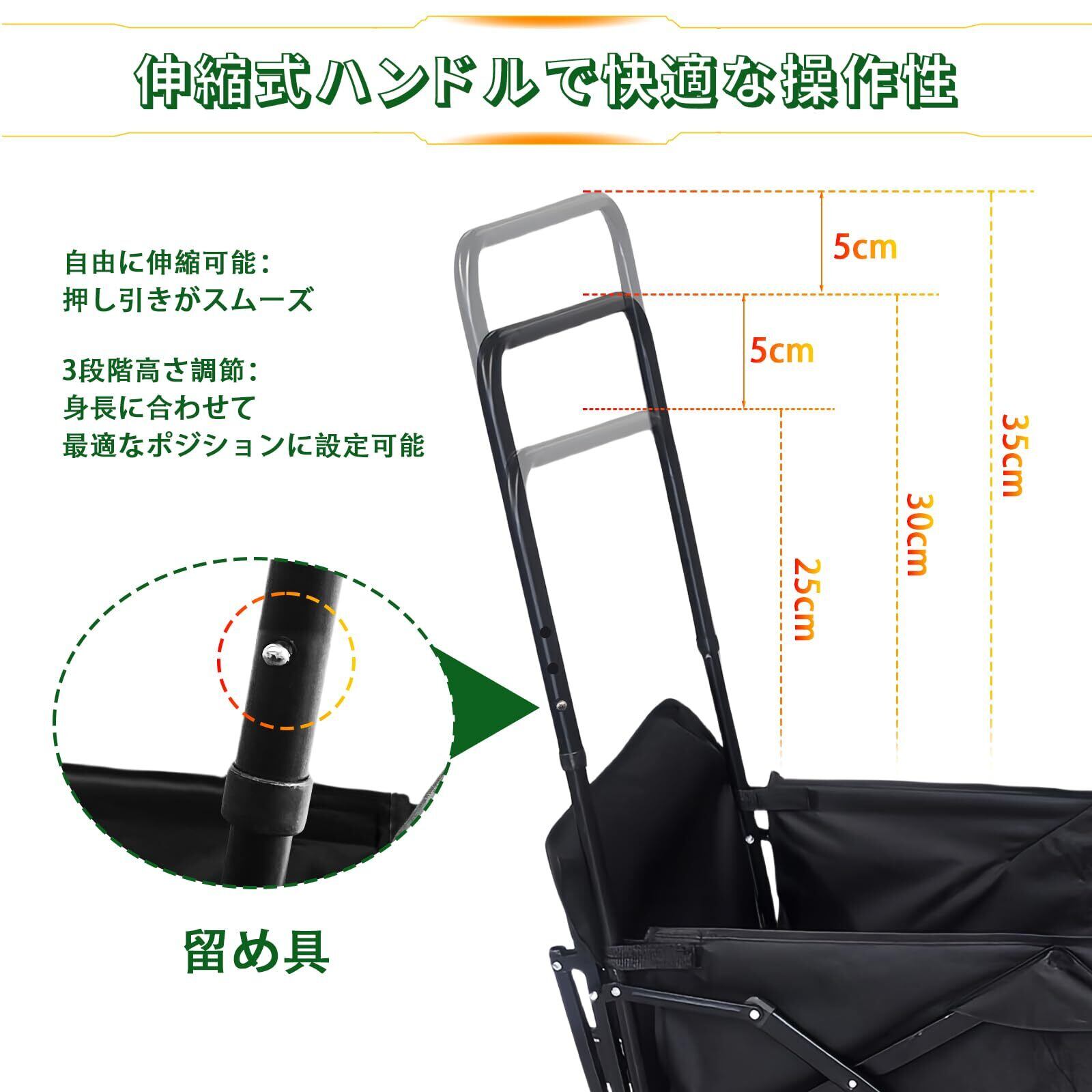 特徴 360度回転静音ホイール, ワンタッチ収束式, 両端展開可能, 多地形対応, 折り畳み式