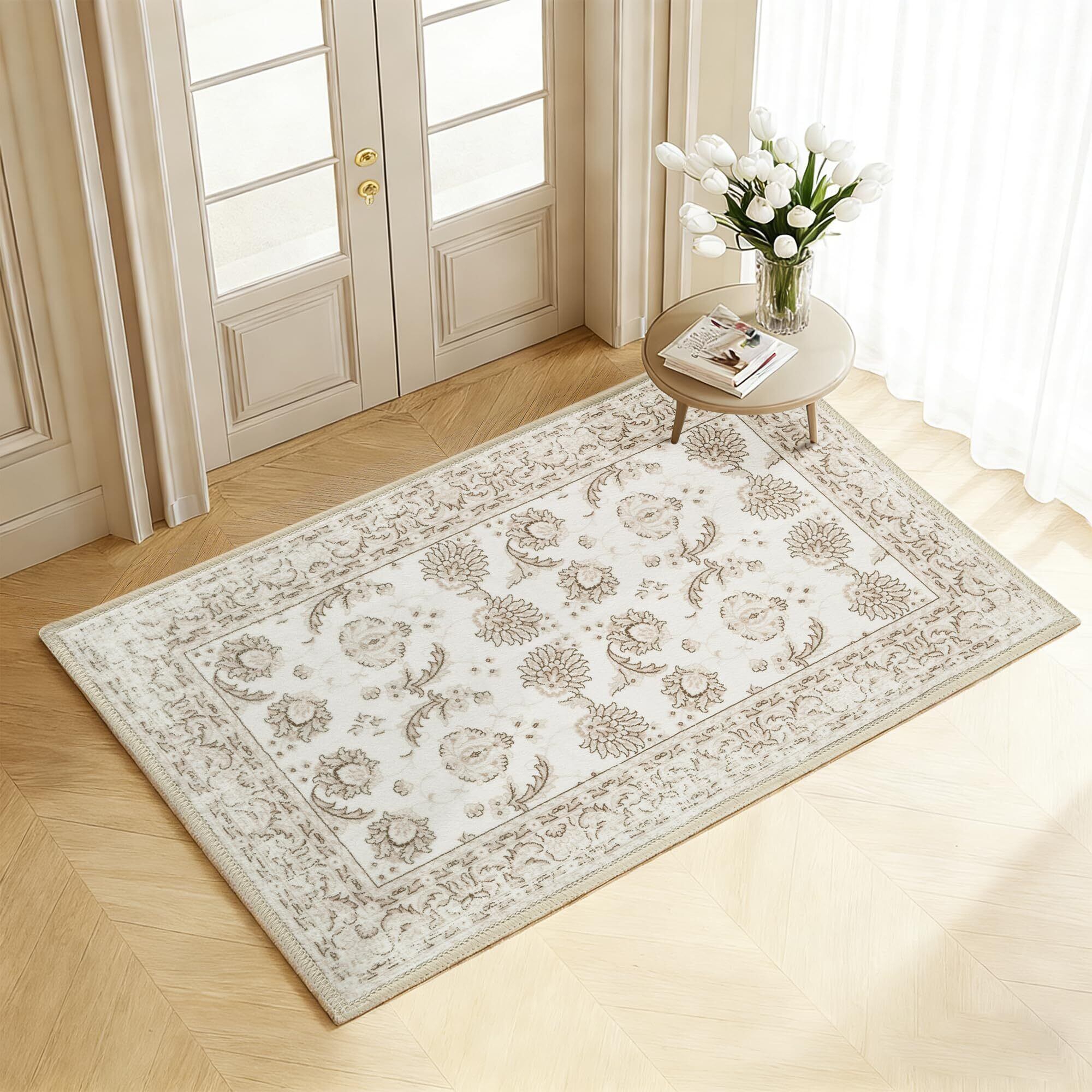 DWCN 玄関マット ラグ 仿カシミヤ 撥水 防滑 厚手 高級 おしゃれ モダン インテリア 防音 室内 屋外 業務用 家庭用 (70×120cm, ベージュプリント柄)