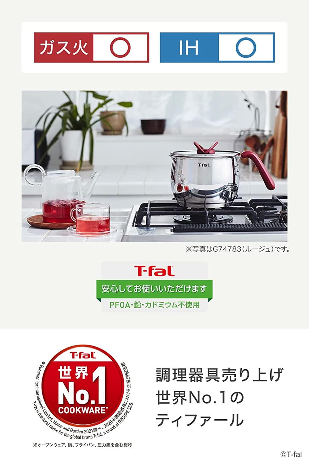 日本正規品は、品質表示・取扱説明書が印刷されたティファールの個装箱で梱包されています