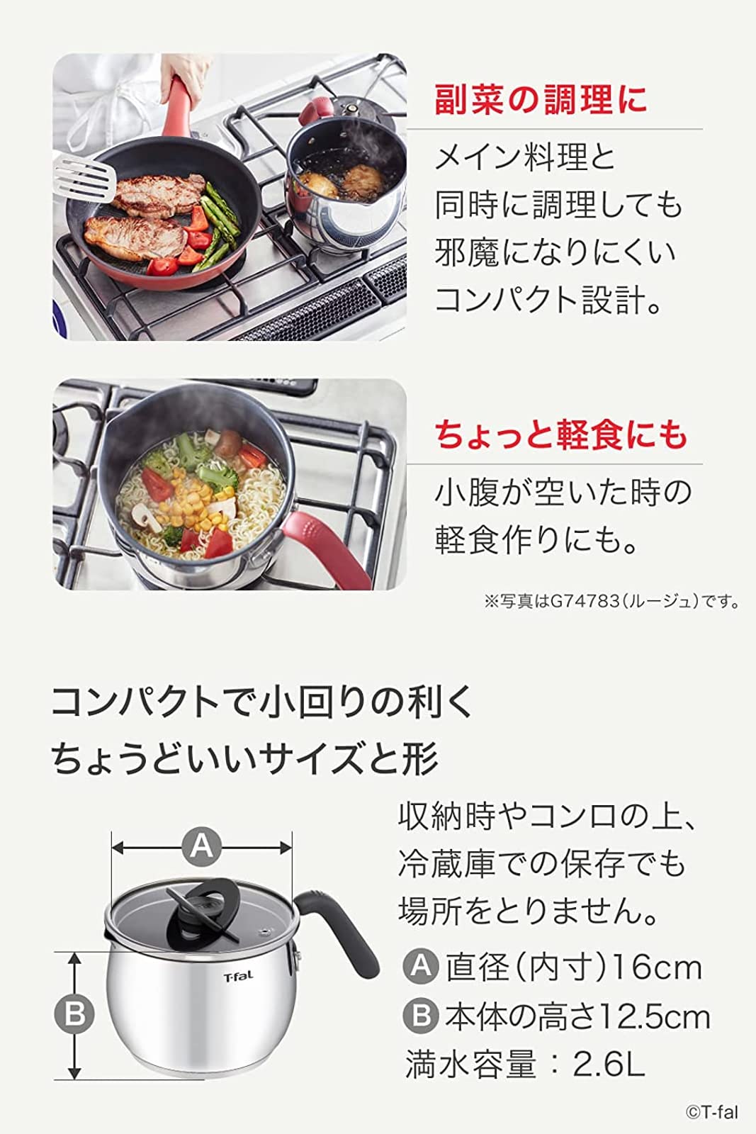 ティファール 片手鍋 16cm 2.6L IH ガス火対応 PFOAなどの有害物質不使用 こびりつきにくさ長持ち 「オプティスペース IHステンレス マルチポット チャコールグレー」 ステンレス グレー G74683