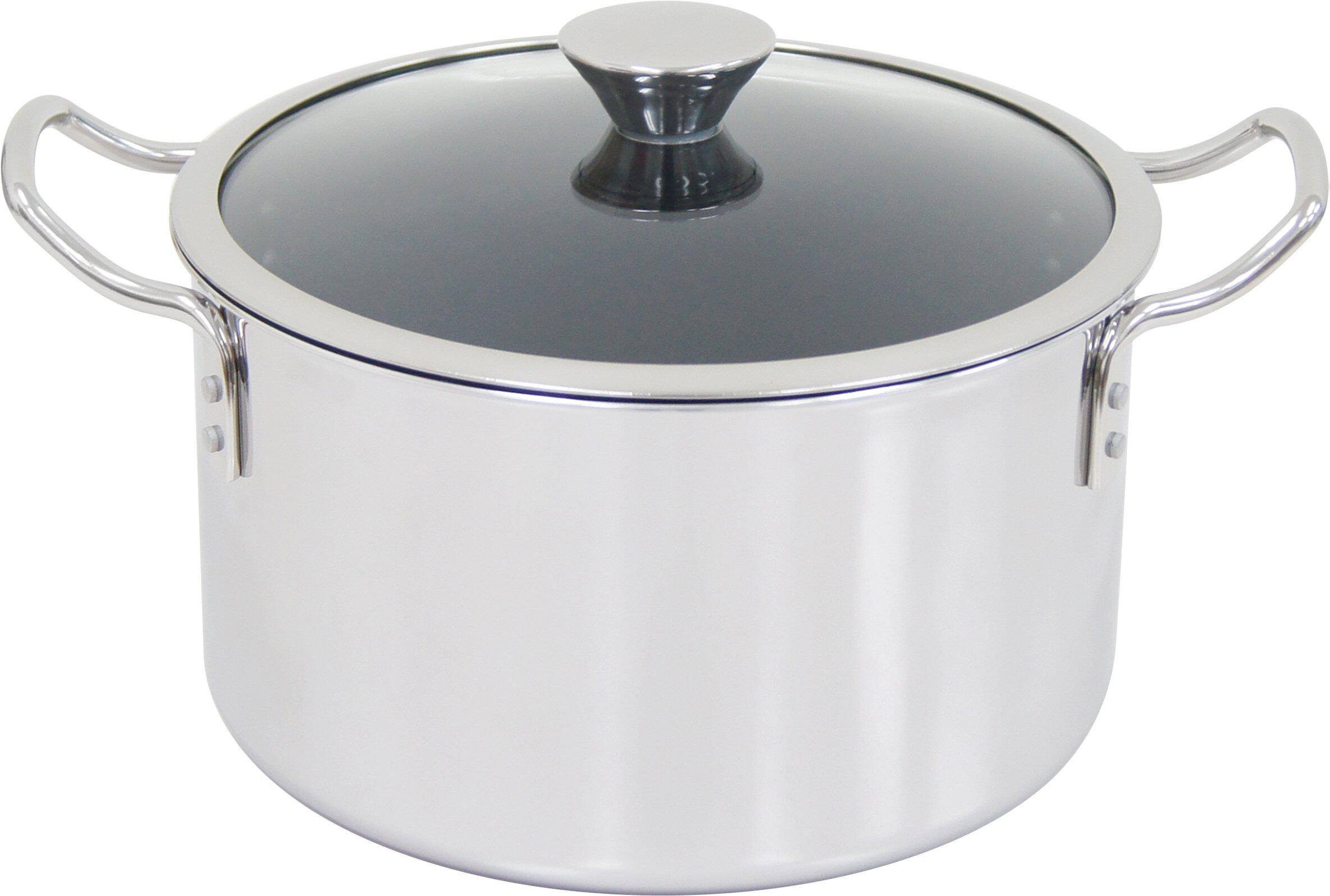 素材・材質:本体/2層クラッド材 内側/アルミニウム合金 外側/ステンレス鋼 取っ手/ステンレス鋼 蓋/物理強化ガラス リング・つまみ/ステンレス鋼