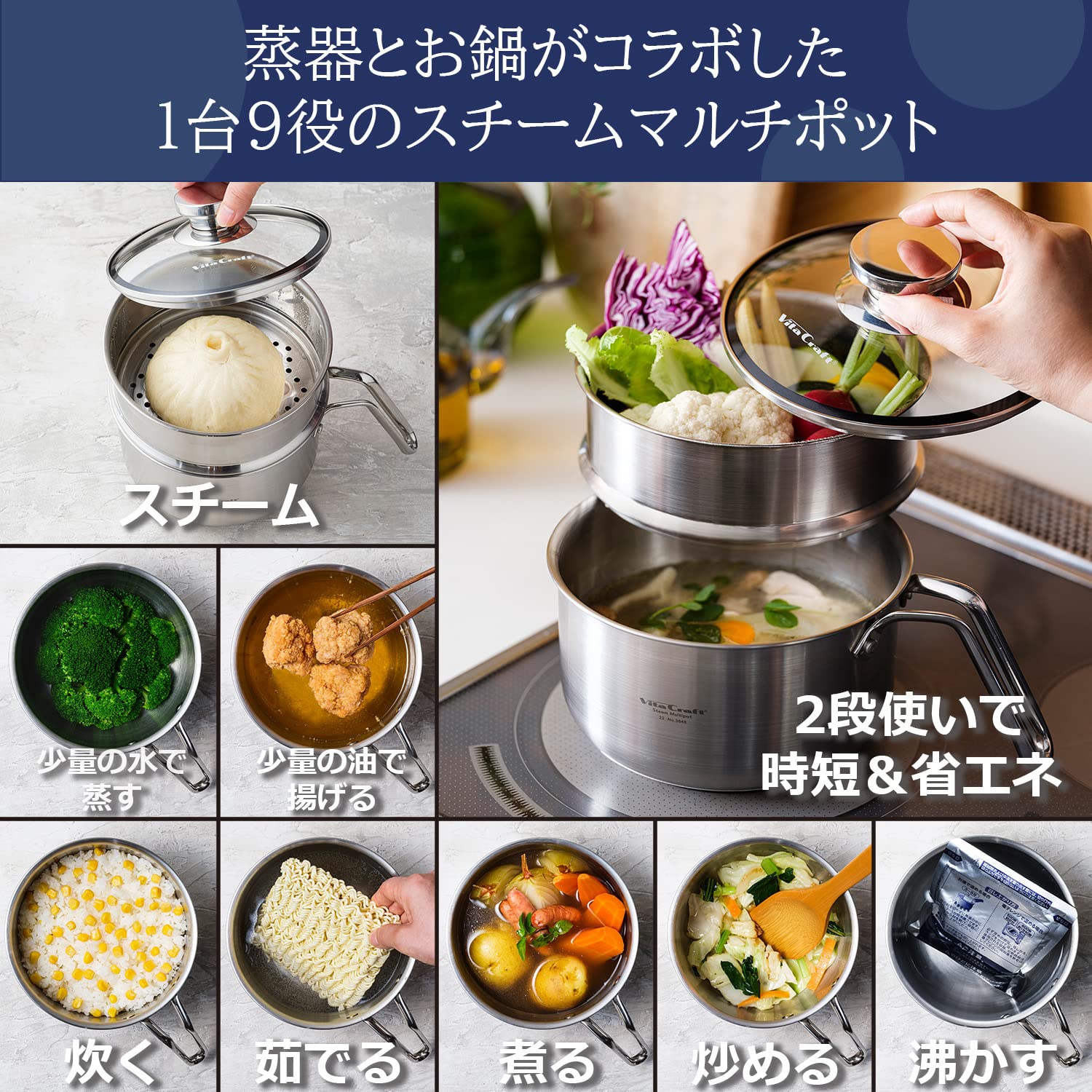 ビタクラフト Vita Craft スチーム マルチポット 1.9L IH ガス火 対応 1台9役 蒸器 せいろ ガラス蓋 付き 時短 省エネ メモリ付き ギフト ミルクパン 片手鍋 マルチパン 3848