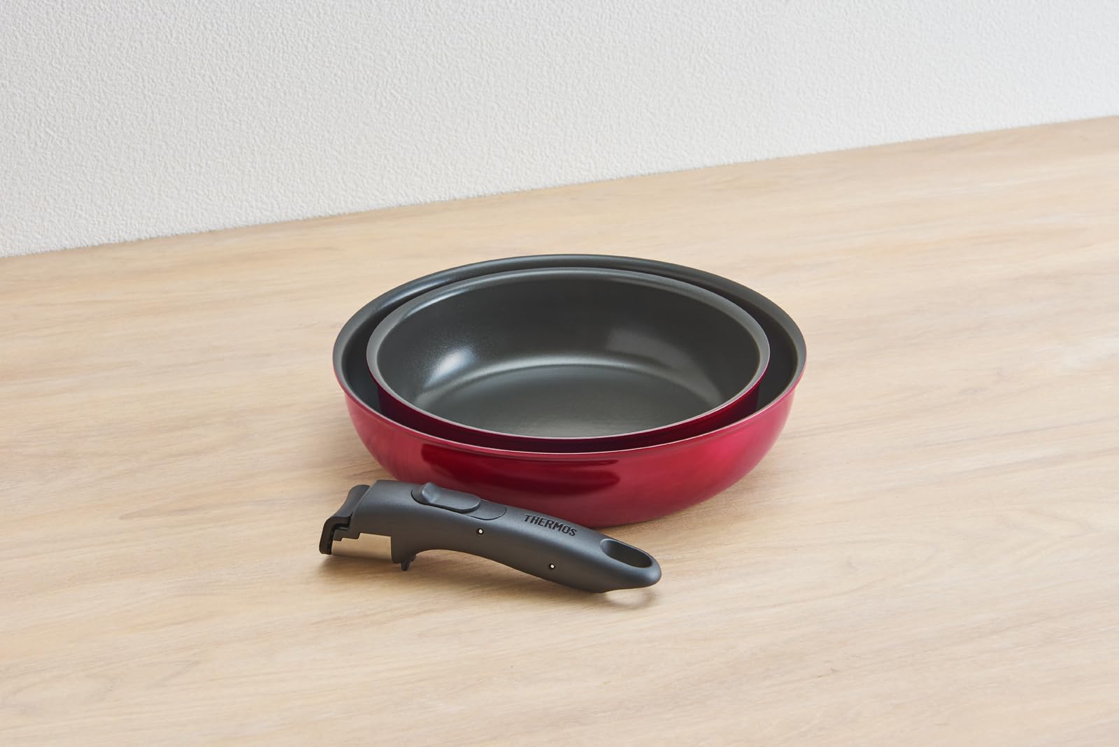 サーモス デュラブルシリーズ 取っ手のとれるフライパン3点セットDA IH・ガス対応 ディープレッド フライパンは食洗機対応 KSD-3A DR