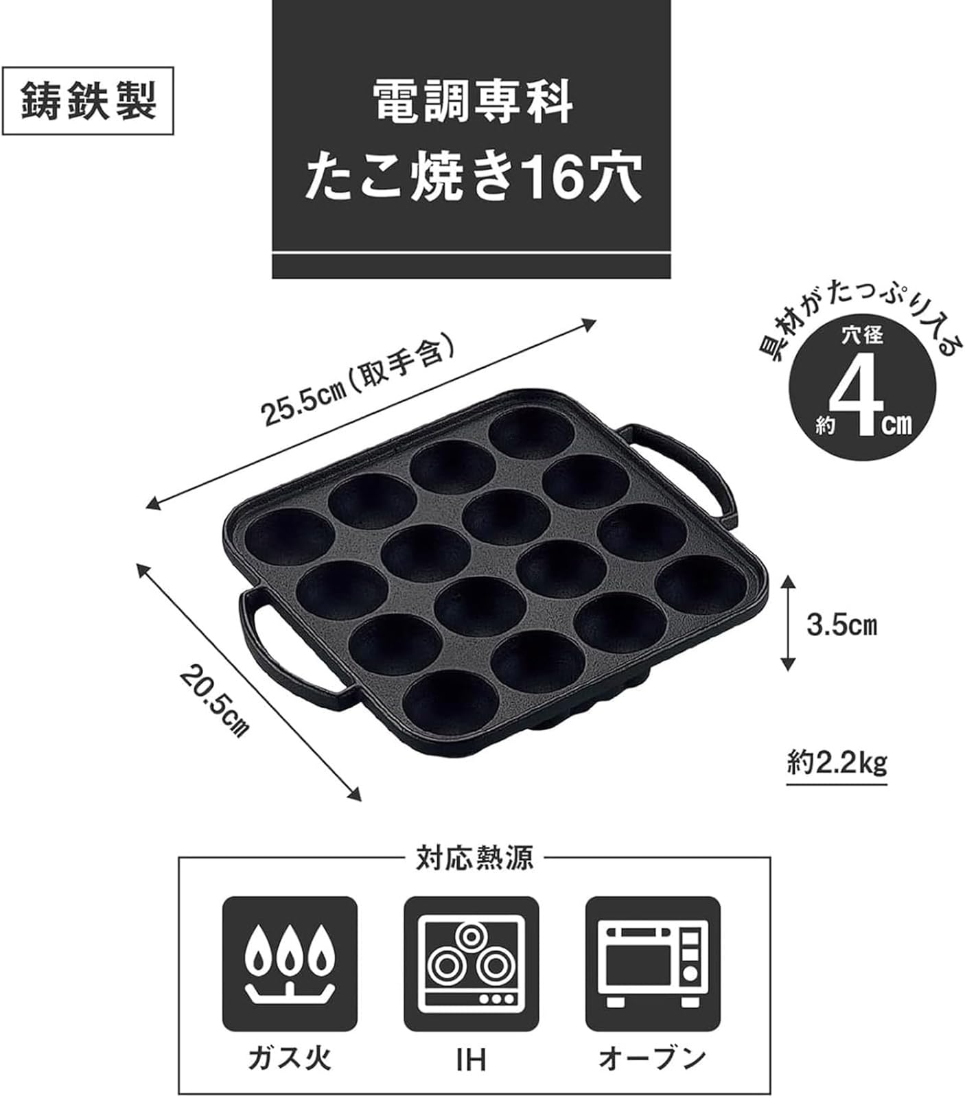 池永鉄工 たこ焼き器 16穴 IH対応 日本製 鉄鋳物 プレート ブラック 電調専科
