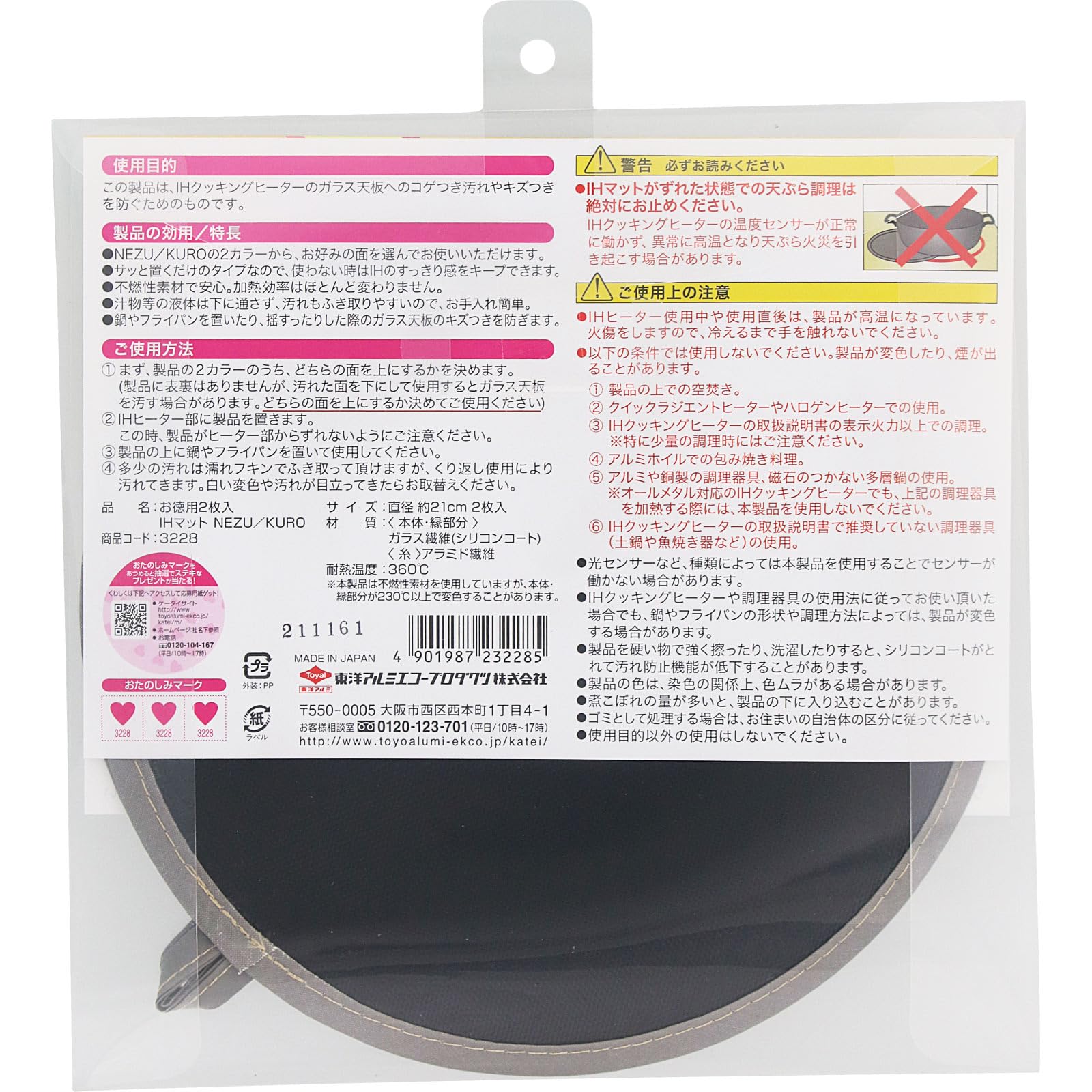 東洋アルミエコープロダクツ お徳用IHマットNEZU/KURO(2枚入)