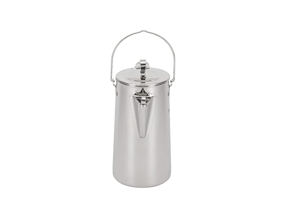 焚火や炭火の高カロリーな熱にも対応する縦長のクラシックなフォルムのケトルです。上部に吊り下げ用のハンドルも備えキャンプシーンに対応いたします。